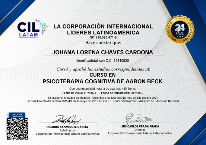 • Psicóloga Especialista Adicciónes Johana Lorena Chaves • Consulta psicológica control •