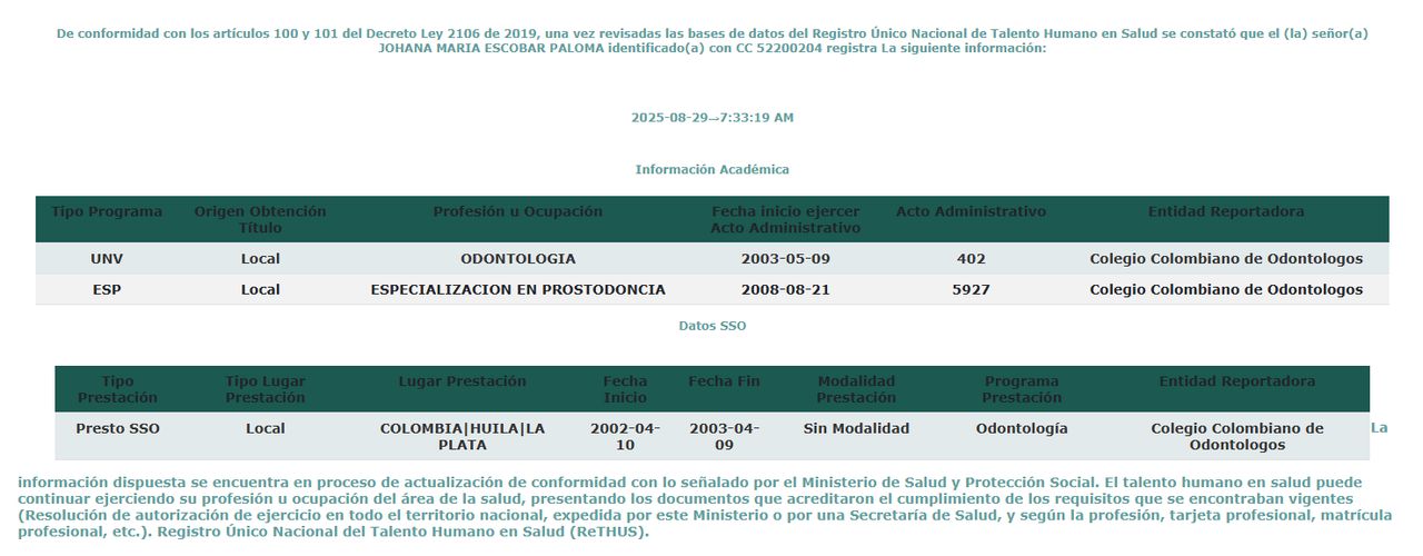 ¿Cuáles son las especialidades principales de Johana Maria Escobar Paloma?Johana Maria Escobar Paloma es Odontólogo. Te mostramos algunos de los servicios que ofrece gracias a su trayectoria y su amplia experiencia: Rehabilitación Oral, Blanqueamiento dental, Detartraje y Profilaxis dental, Urgencias.