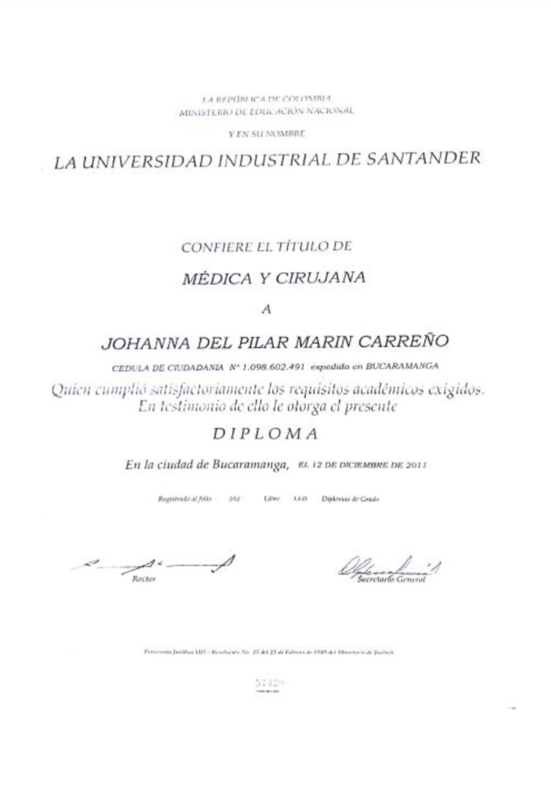 ¿Cómo puedo reservar una cita con Johanna Marin Carreño?El calendario que muestra Johanna Marin Carreño en Doctoralia está actualizado en tiempo real, por lo que solo tienes que elegir qué día y hora te convienen entre las disponibles. La reserva es gratuita y además recibes un recordatorio antes de la visita.