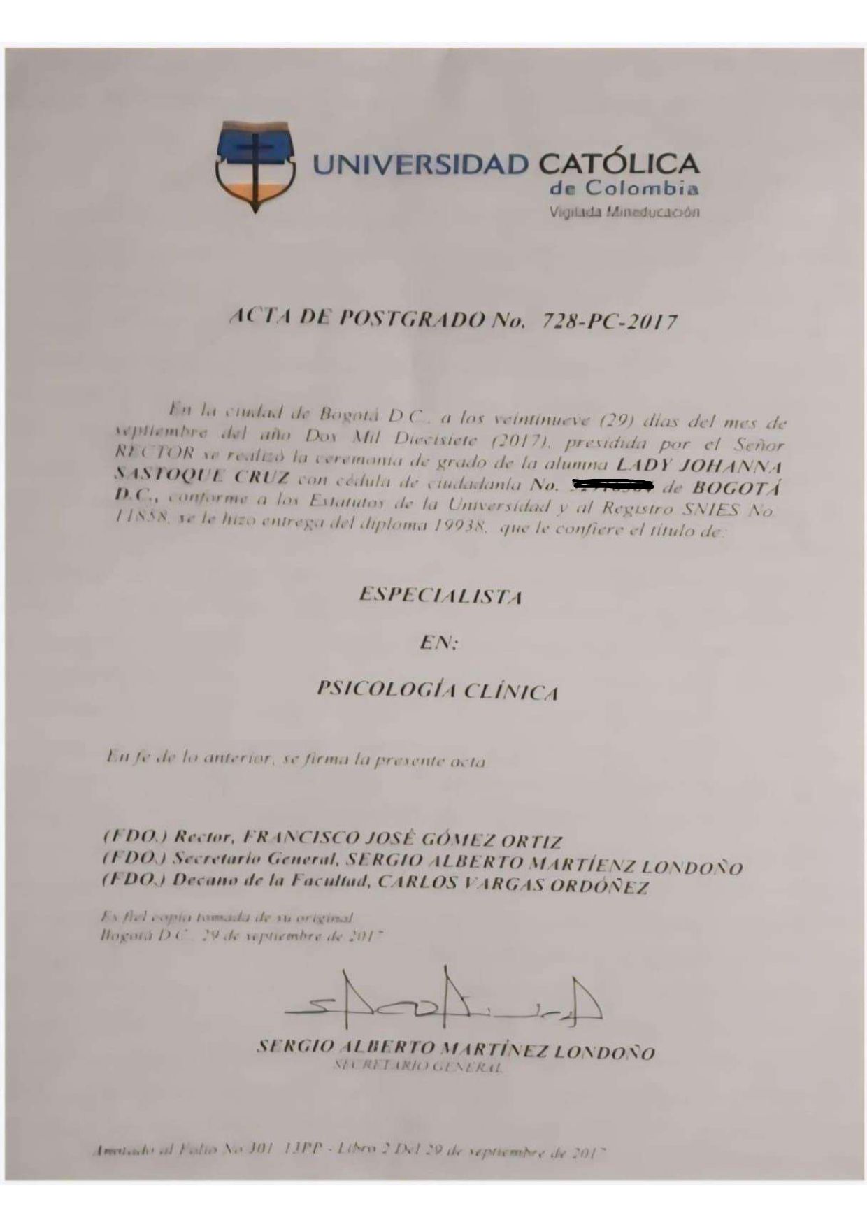 ¿Cuáles son las especialidades principales de Johanna Sastoque?Johanna Sastoque es Psicólogo. Te mostramos algunos de los servicios que ofrece gracias a su trayectoria y su amplia experiencia: Consulta por psicología, Consulta en línea, Consulta psicológica online, Siguientes consultas online, Psicoterapia virtual.