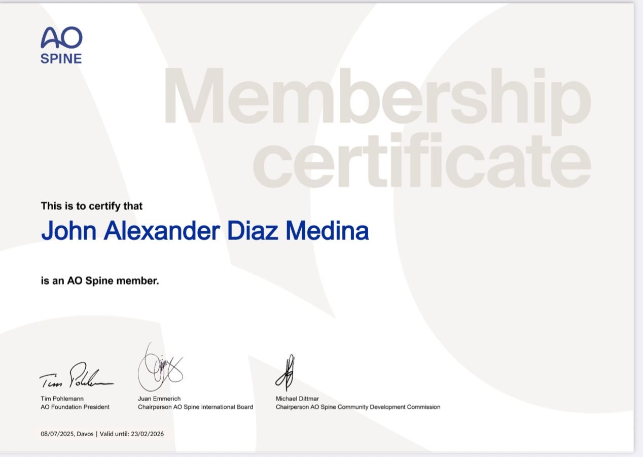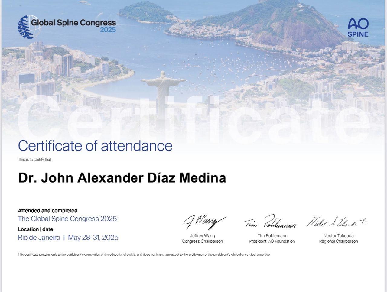 Médico Cirujano General de la Universidad del Rosario, Especialista en Neurocirugía de la Universidad del Rosario; miembro activo de la Asociación Colombiana de Neurocirugía y miembro de AO Spine. Profesional comprometido en brindar una atención humana, con un lenguaje claro y en búsqueda de soluciones acertadas para mis pacientes.