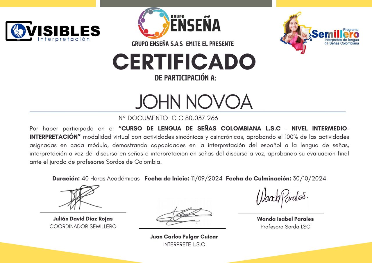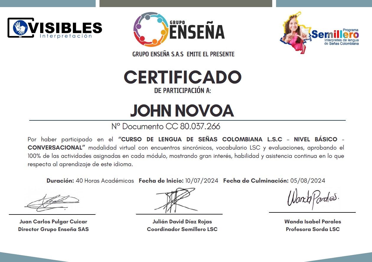¿Qué idiomas habla John Novoa?Puedes comunicarte con John Novoa en Español.