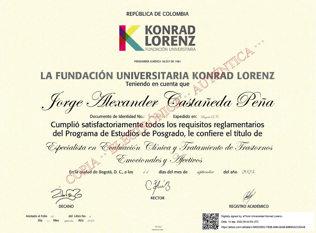 Psicólogo- Especialista en atención Clínica en Evaluación de trastornos emocionales y Afectivos de la Fundación Universitaria Konrad Lorenz. Con perfil para atención directa a personas con distintas patologías y cuidado de la salud mental. Con experiencia en terapias de Tercera Generación y Cognitivo Conductuales, (ACT, DBT, mindfulness), así como en el diseño de estrategias de prevención y promoción del autocuidado emocional.