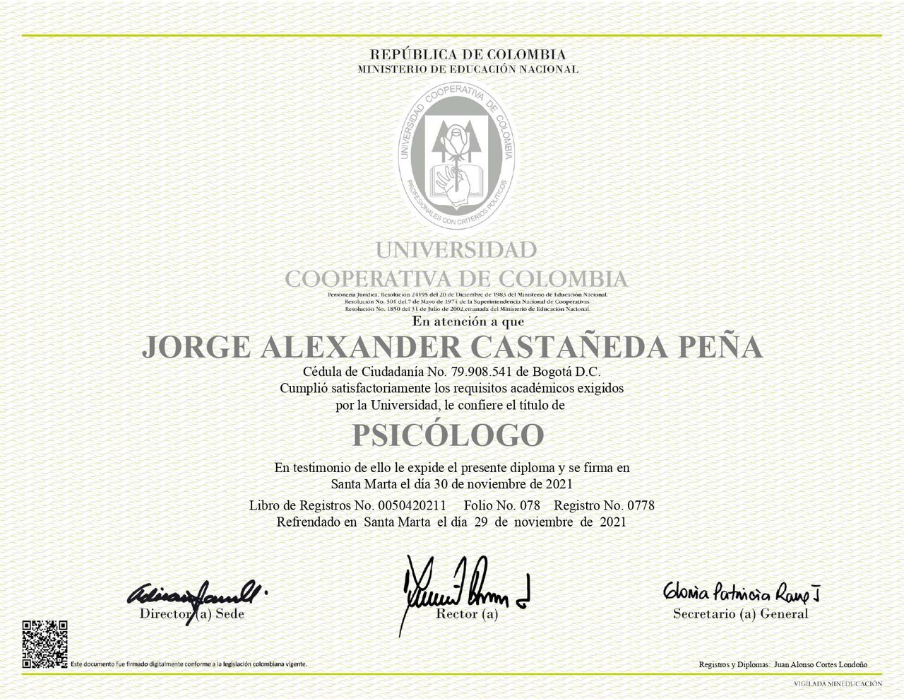 ¿Cuáles son las especialidades principales de Jorge Alexander Castañeda Peña?Jorge Alexander Castañeda Peña es Psicólogo. Te mostramos algunos de los servicios que ofrece gracias a su trayectoria y su amplia experiencia: Asesoría psicológica y psicoeducación, Pautas de crianza, Psicoterapia de pareja, Psicoterapia Individual, Terapia cognitiva del comportamiento (TCC), Terapia de pareja, Consulta psicológica por depresión, Consulta psicológica por ansiedad, Consulta psicológica online, Consulta virtual de pareja.