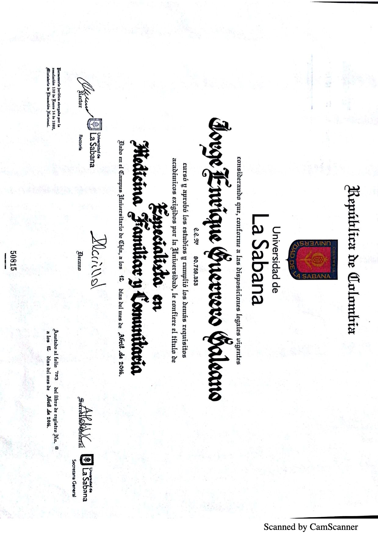 ¿Cuáles son las especialidades principales de Jorge Guerrero ?Jorge Guerrero es Especialista en Medicina Familiar. Te mostramos algunos de los servicios que ofrece gracias a su trayectoria y su amplia experiencia: Consulta en línea, Visita Medicina Familiar, Visita domiciliaria Medicina Familiar, Sueroterapia, Control medicina familiar presencial, Control medicina familiar virtual.