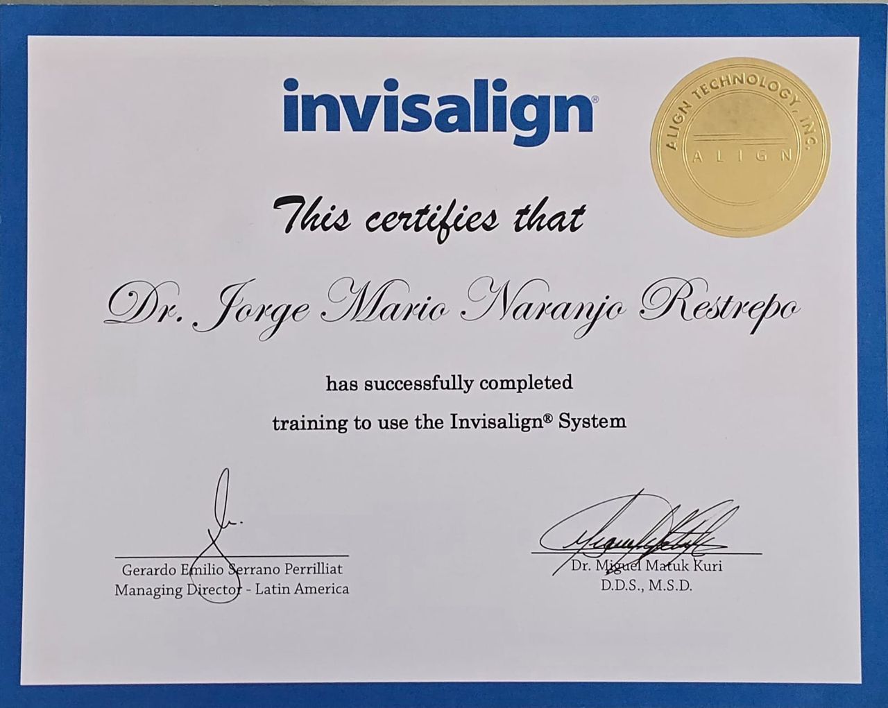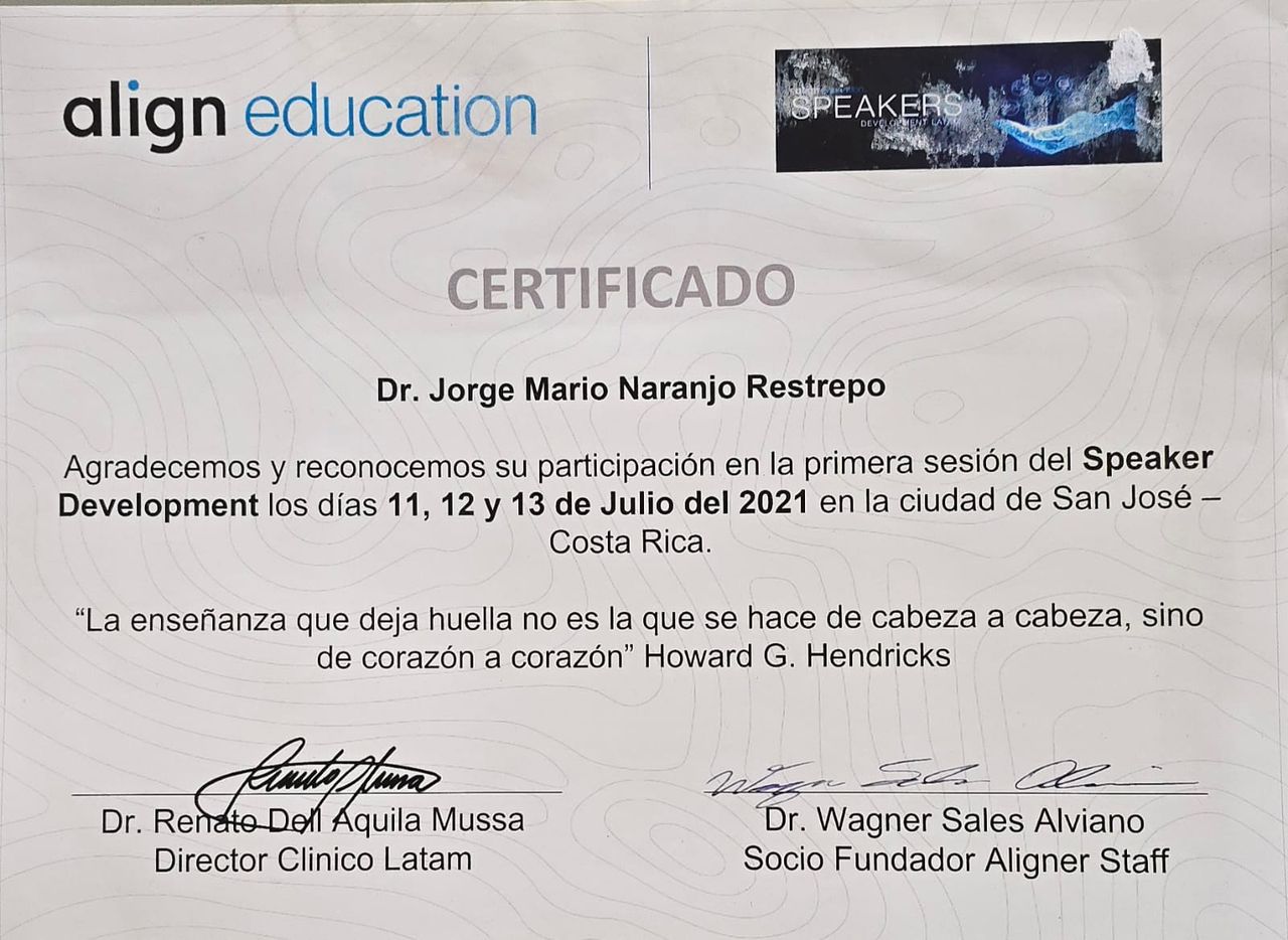 Speaker Oficial de Align Technology por 7 años.