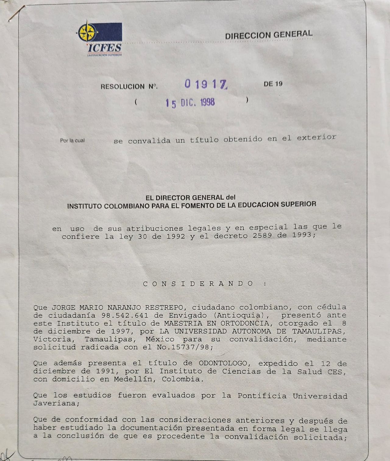Graduado de la Facultad de Odontología Universidad CES.