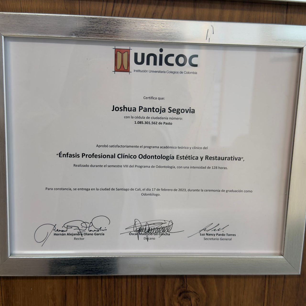 Soy el Dr. Joshua Segovia, odontólogo con énfasis en Rehabilitación Oral y Estética Dental y implantes dentales , miembro del Colegio Colombiano de Odontólogos y graduado en la ciudad de Cali, Valle del Cauca.