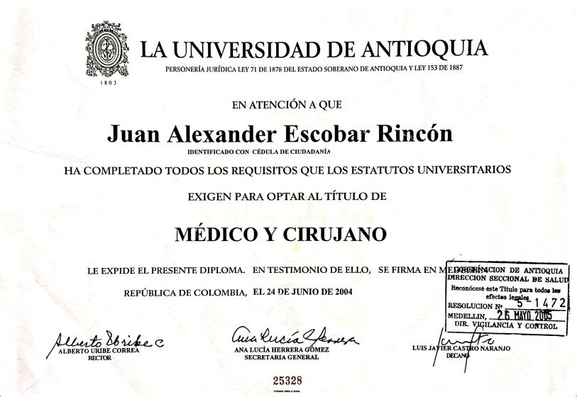 ¿Te has visitado con Dr. Juan Alex Escobar Rincon? Comparte cómo fue tu experiencia. Cientos de pacientes te lo agradecerán.