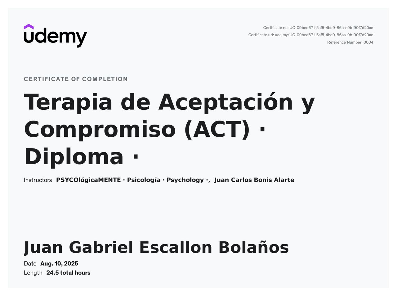 Psicoterapia Hipnosis Clínica Programación Neurolinguística Coaching Empresarial Manejo del Duelo Terapia Cognitivo Conductual Mindfulness Terapia Dialéctico Conductual Terapia de Aceptación y Compromiso