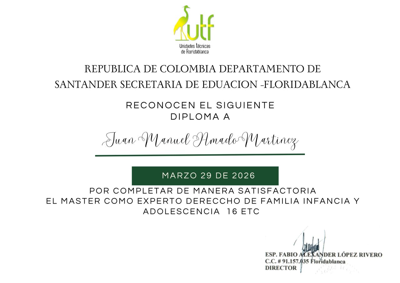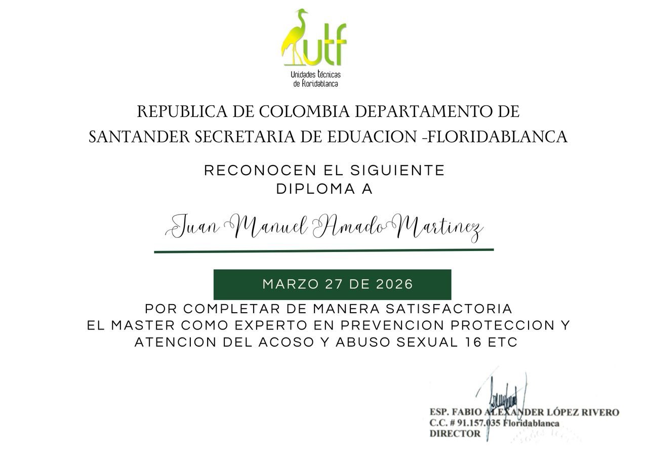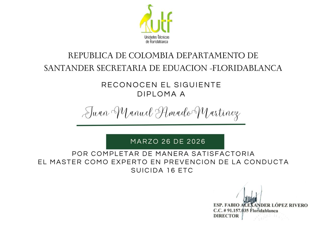 El Dr. Juan Manuel Amado Martínez es un destacado psicólogo, Mg en psicologia clinica, sexologia, homeopatia, neuropsicologia y educacion, Dr en neuropsicólogia, considerado el mejor en Bucaramanga. Psicólogo, Magíster en Psicología Clínica, Magíster en Neuropsicología y Educación, Magíster en Sexología, PhD Honoris Causa, por la Academia de Educación, Doctor de Doctores por el Colegio de Doctores del Mundo y Doctor Académico. Con más de 15 años de excelencia profesional, integra ciencia, neurotecnología y humanidad. Reconocido a nivel nacional, ofrece un acompañamiento ético, cercano y profundamente transformador, donde cada consulta se convierte en un espacio de confianza, sanación y evolución personal.