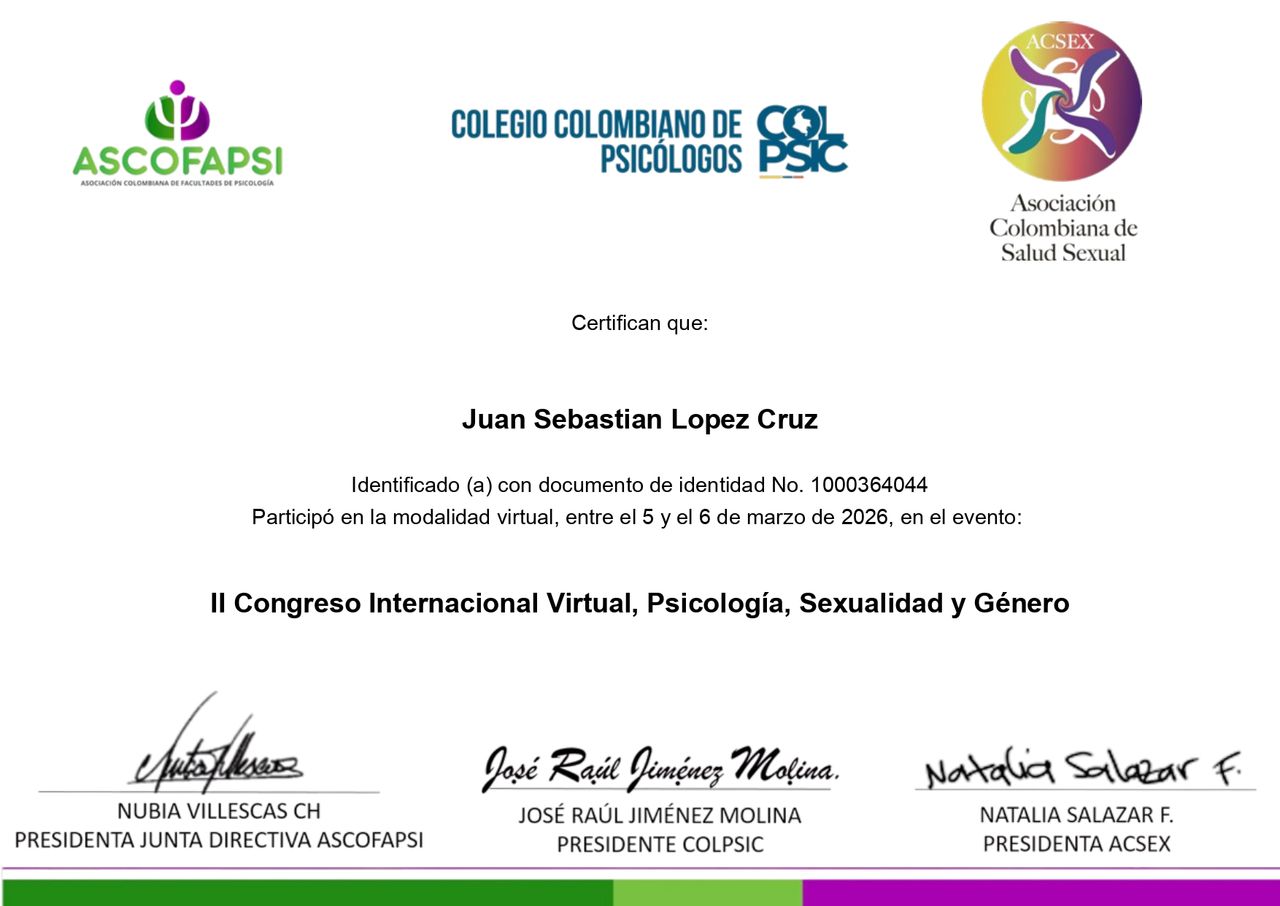 Soy psicólogo clínico con experiencia en atención psicológica a población adulta, acompañando procesos relacionados con el manejo emocional, el estrés, la ansiedad, el estado de ánimo y las dificultades en las relaciones interpersonales.