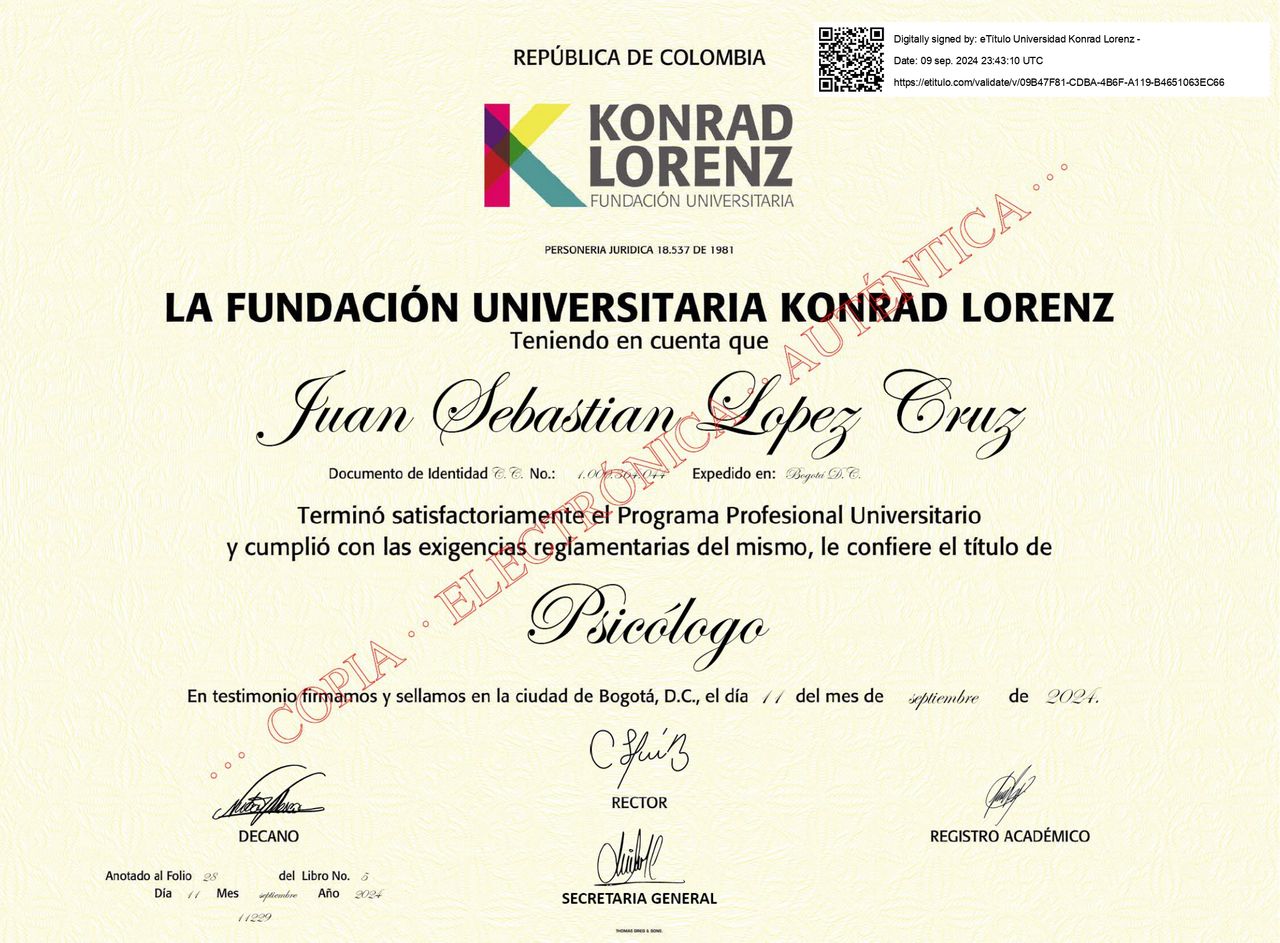 ¿Cuáles son las especialidades principales de Juan Sebastian Lopez Cruz?Juan Sebastian Lopez Cruz es Psicólogo. Te mostramos algunos de los servicios que ofrece gracias a su trayectoria y su amplia experiencia: Consulta en línea, Siguientes consultas online, Consulta psicológica online, Psicoterapia virtual.