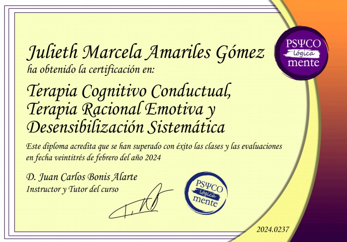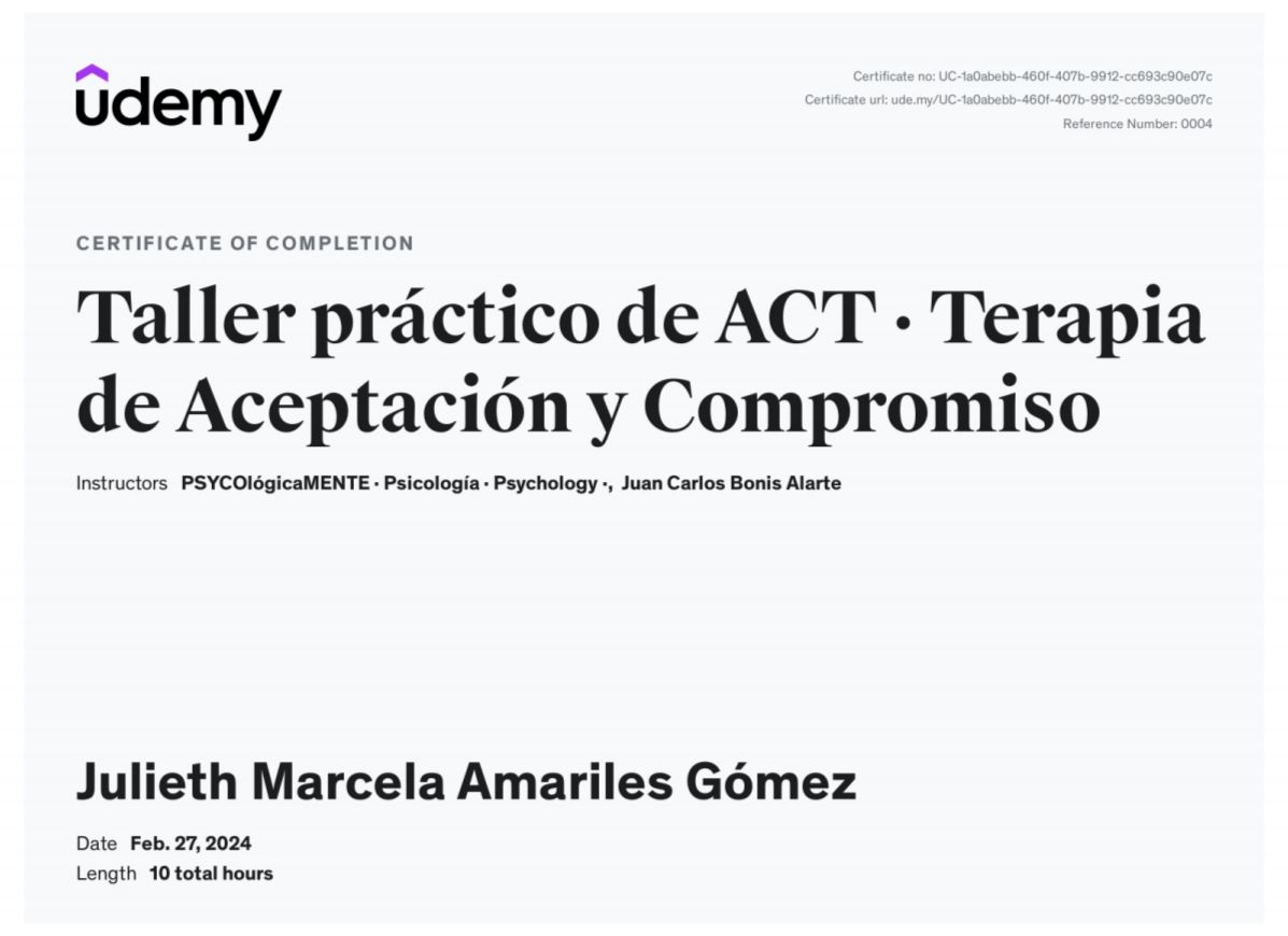 ¿Cuáles son las especialidades principales de Julieth Marcela Amariles Gomez?Julieth Marcela Amariles Gomez es Psicólogo. Te mostramos algunos de los servicios que ofrece gracias a su trayectoria y su amplia experiencia: Visita Psicología, Psicoterapia de pareja, Psicoterapia Individual, Terapia de pareja, Terapia familiar, Psicoterapia Familiar, Consulta en línea, Consulta en Crisis, Urgencias psicológicas, Consulta psicológica.