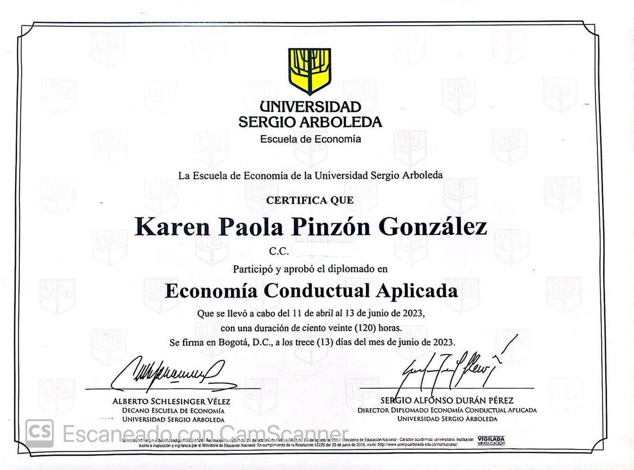 Soy psicóloga de la Universidad Sergio Arboleda y actualmente curso una Maestría en Psicología Clínica en la Pontificia Universidad Javeriana, con enfoque comportamental.