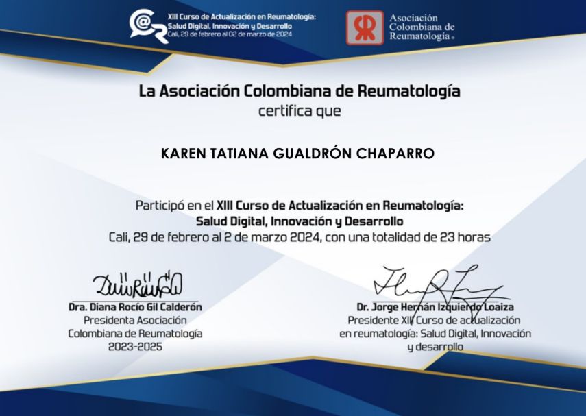 La doctora Karen es experta en espondiloartritis anquilosante en mujeres, dando un tratamiento integral y adecuado. Me ha ayudado muchísimo