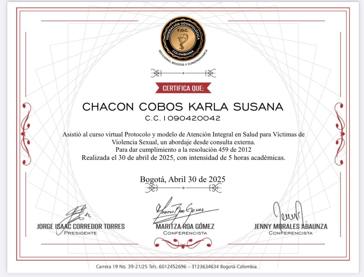 Dra. Karla Chacón Cobos Odontóloga independiente en el área de estética oral especialista altamente destacada con conocimientos sólidos y experiencia de más de 12 años en el campo de la Odontología, dispuesta a solucionar los problemas de salud oral de sus pacientes de toda indole, como cualidades a destacar se mencionan: humana, honesta, ética y responsable. Brindo un atención humanizada y cálida donde experimentaras una Odontología placentera minimizando el dolor. Te espero en mi consulta para atenderte con mucho amor,pasión,tecnologia y humanidad. Siempre serás bienvenid@.