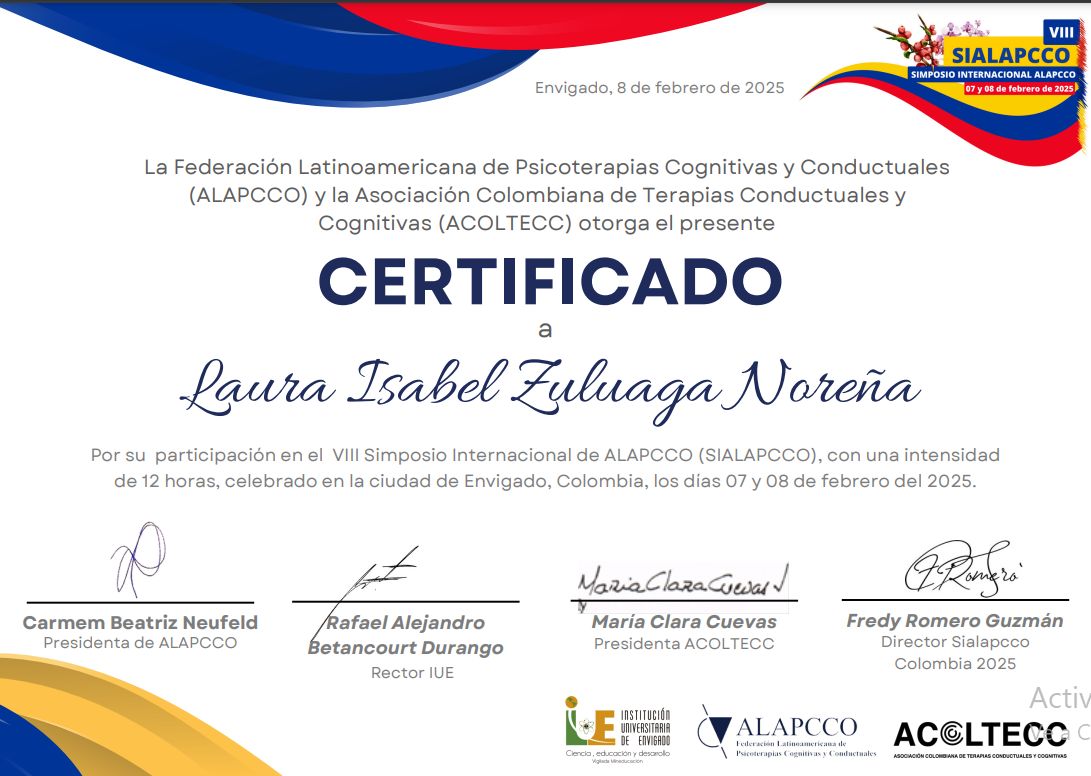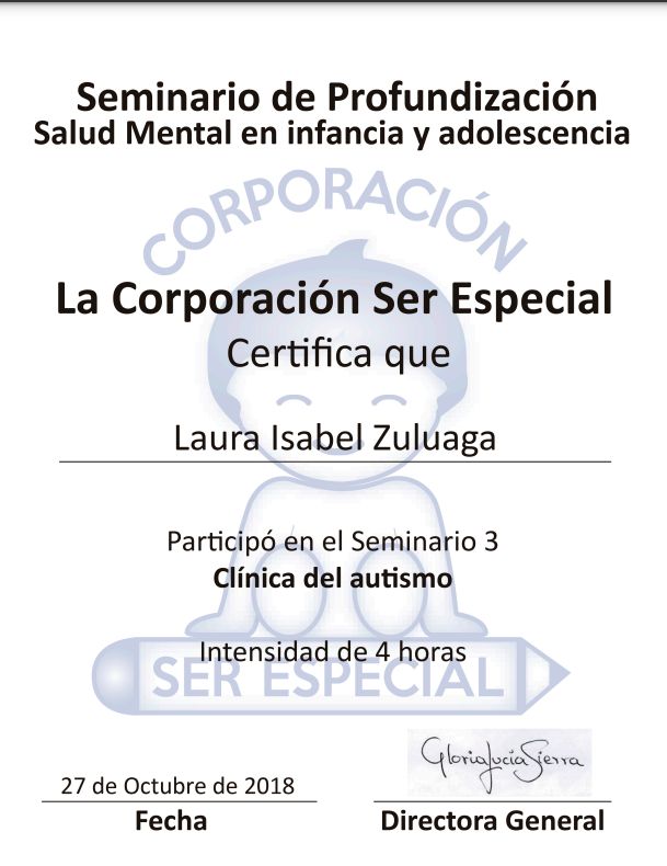 ¿Cuáles son las especialidades principales de Laura Zuluaga?Laura Zuluaga es Psicólogo. Te mostramos algunos de los servicios que ofrece gracias a su trayectoria y su amplia experiencia: Asesoría psicológica y psicoeducación, Capacitaciones empresariales, Consulta psicológica infantil, Salud mental empresarial, Orientación vocacional, Psicoterapia Individual, Terapia cognitiva del comportamiento (TCC), Consulta por ansiedad, Visita Psicología, Terapia Breve.