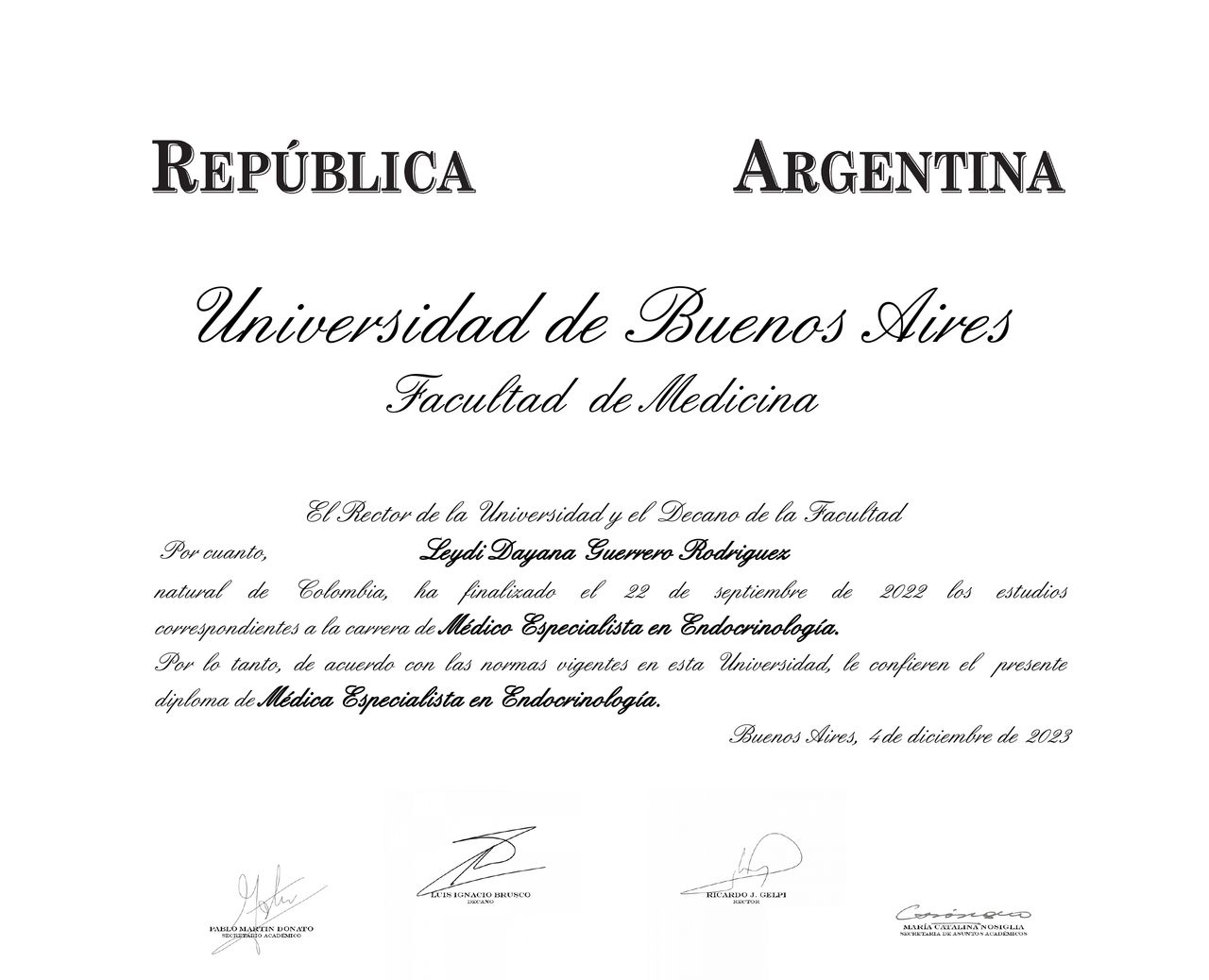 ¿Cuáles son las especialidades principales de Leydi Dayana Guerrero Rodriguez?Leydi Dayana Guerrero Rodriguez es Endocrinólogo. Te mostramos algunos de los servicios que ofrece gracias a su trayectoria y su amplia experiencia: Manejo del hipotiroidismo, Tratamiento para síndrome de ovario poliquístico, Densitometría ósea, Cáncer tiroides, Manejo para la osteoporosis, Tratamiento para trastornos del colesterol, Manejo de diabetes, Ecografía de tiroides, Tratamiento para trastorno de metabolismo óseo, Tratamiento para la obesidad.