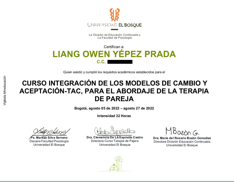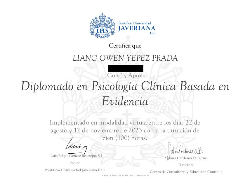 ¡Mucho gusto! Mi nombre es Liang Owen, soy psicólogo clínico egresado de la Fundación Universitaria Konrad Lorenz. Trabajo desde un enfoque basado en técnicas respaldadas por la evidencia, adaptando cada proceso terapéutico a la historia, necesidades y contexto de cada persona.