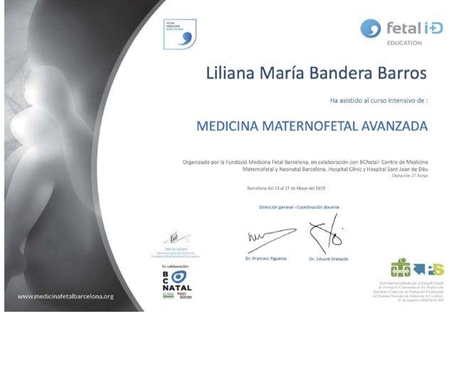 Fetal, titulo obtenido con la Universidad de Barcelona (pendiente homologación), con