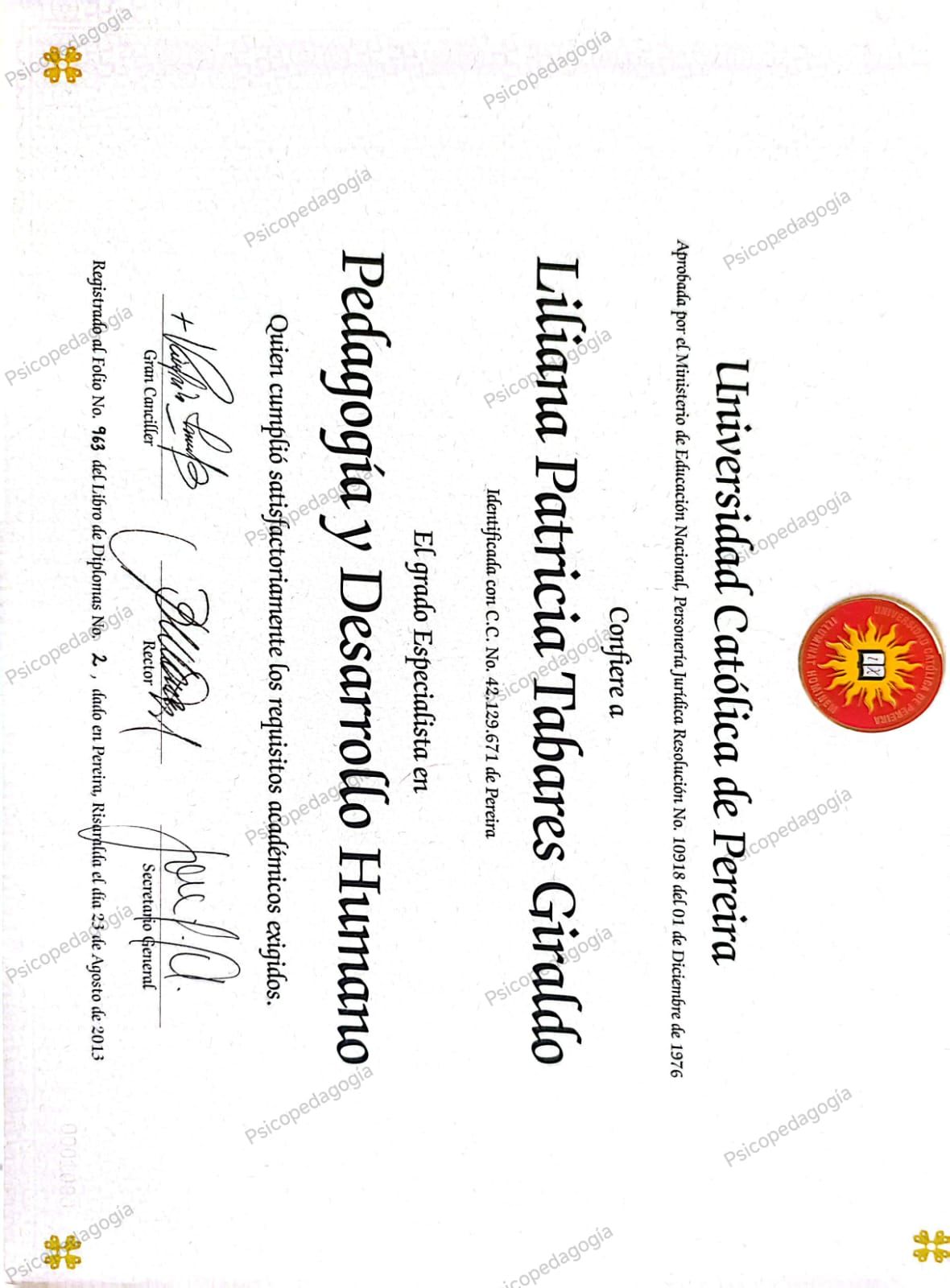 ¿Cuáles son las especialidades principales de Liliana Patricia Tabares Giraldo?Liliana Patricia Tabares Giraldo es Psicólogo, Psicopedagogo. Te mostramos algunos de los servicios que ofrece gracias a su trayectoria y su amplia experiencia: Psicología deportiva, Gestión del cambio, Manejo del estrés, Manejo emocional, Consulta psicológica por ansiedad, Asesoría psicológica y psicoeducación, Tratamiento para la depresión, Monitoreo casos de estrés, Gestión de estrés, Evaluación psicológica.