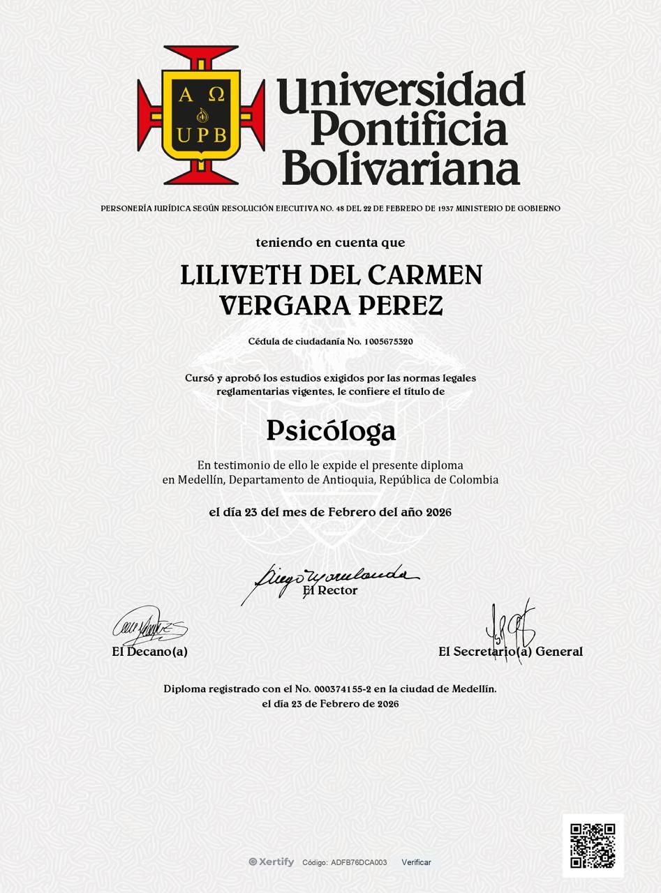 Liliveth es una psicóloga increíble, de verdad se nota que le apasionan las personas y ayudarlas a superar sus problemas. La he recomendado a varios amigos y todos han quedado satisfechos con su trabajo.