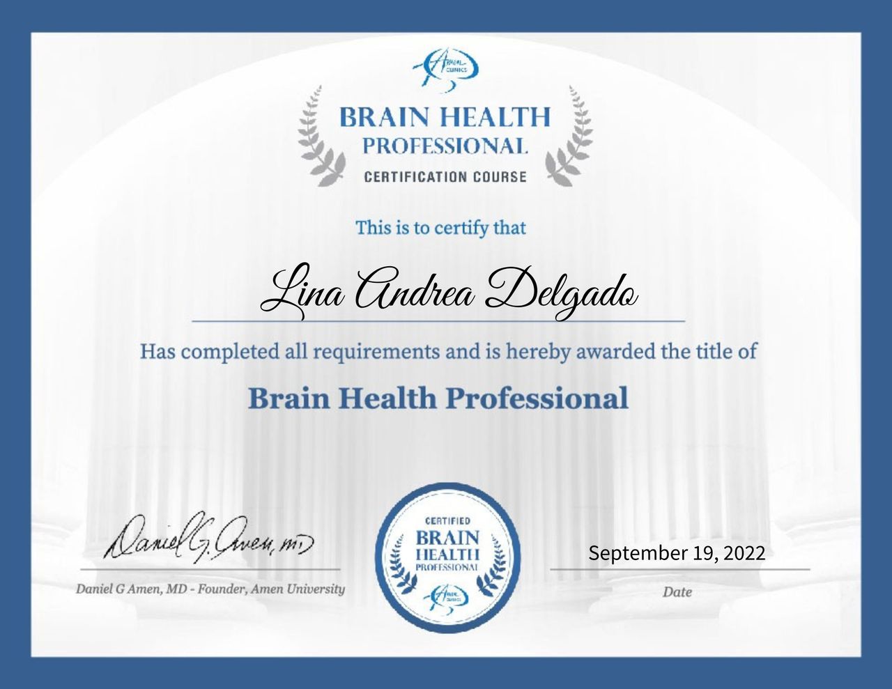 Soy psicóloga (TP No. 304953), certificada como Brain Health Professional por Amen Clinics, formada como Coach Personal y con experiencia en consejería basada en Principios Bíblicos. Fundé NeuroRenova con el propósito de integrar la neurociencia aplicada y un enfoque integral del bienestar (biológico, psicológico, social y espiritual).
