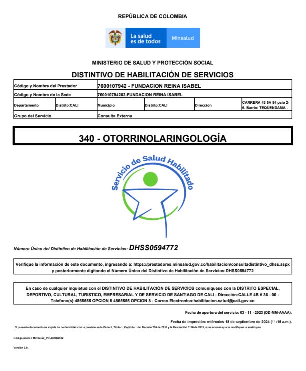 • Fundacion Reina Isabel • Consulta de Otorrinolaringología •