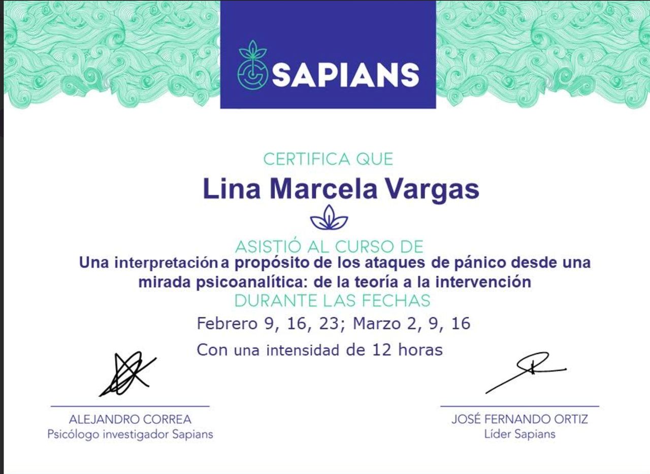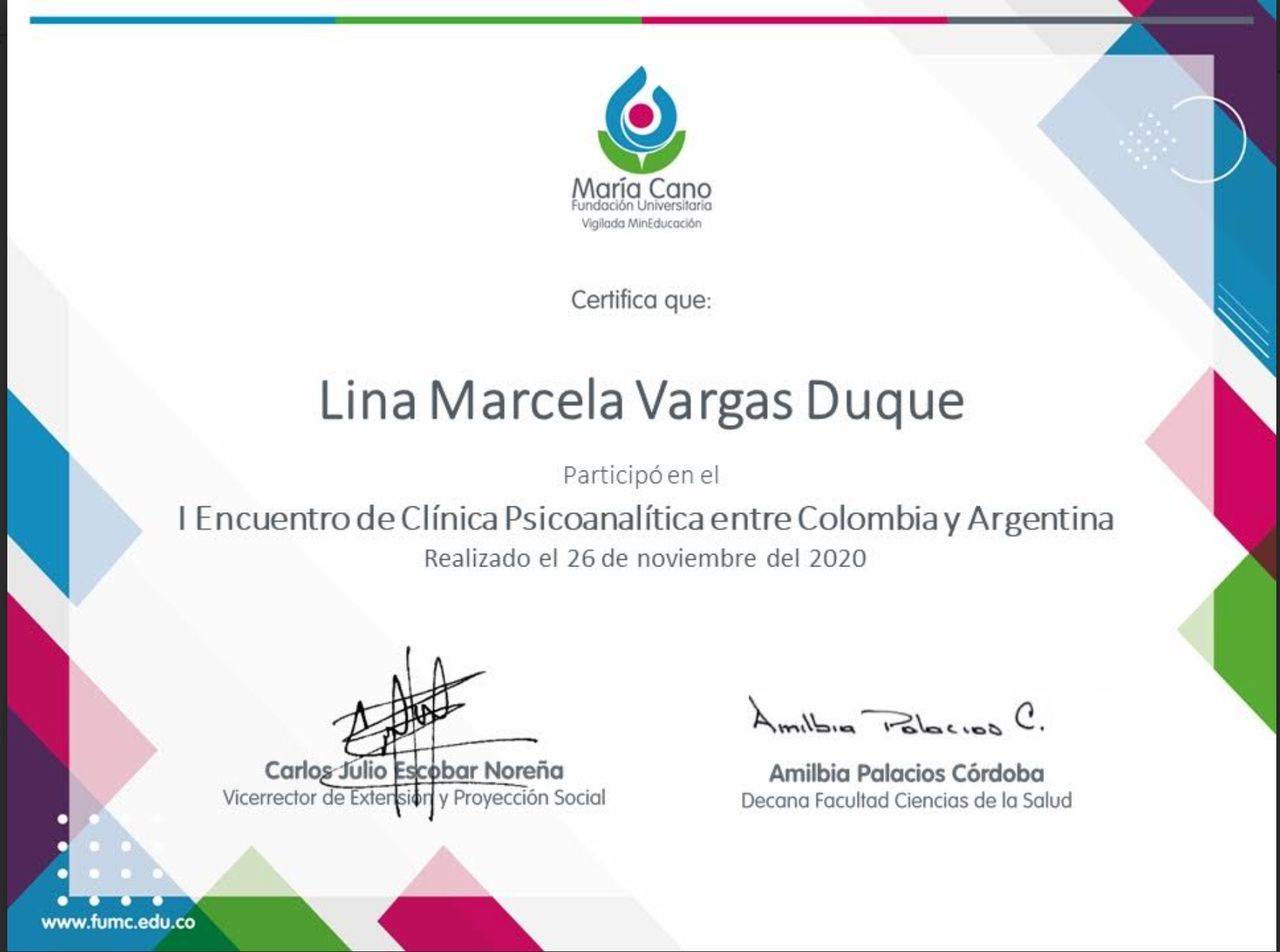 Soy Lina Vargas, psicóloga practicante de psicoanálisis y más de siete años de experiencia en la práctica clínica. Acompaño a niños mayores de cinco años, adultos y parejas en el abordaje de diversas problemáticas como duelos, ansiedad, depresión, trastornos del ánimo, dificultades de aprendizaje, conflictos familiares, violencia sexual y experiencias infantiles que siguen marcando la vida adulta.