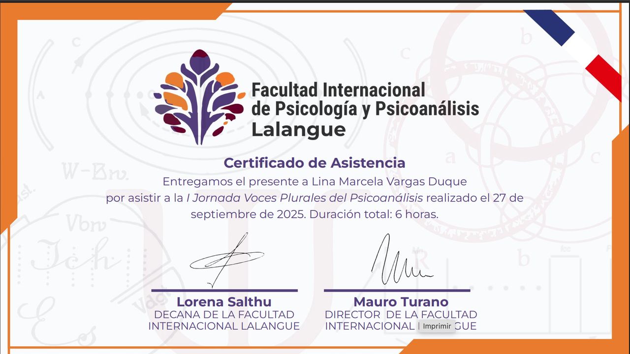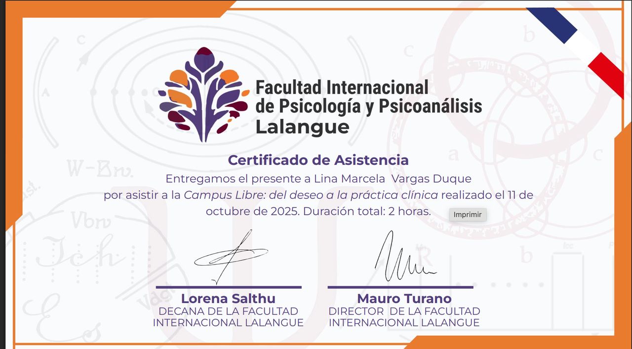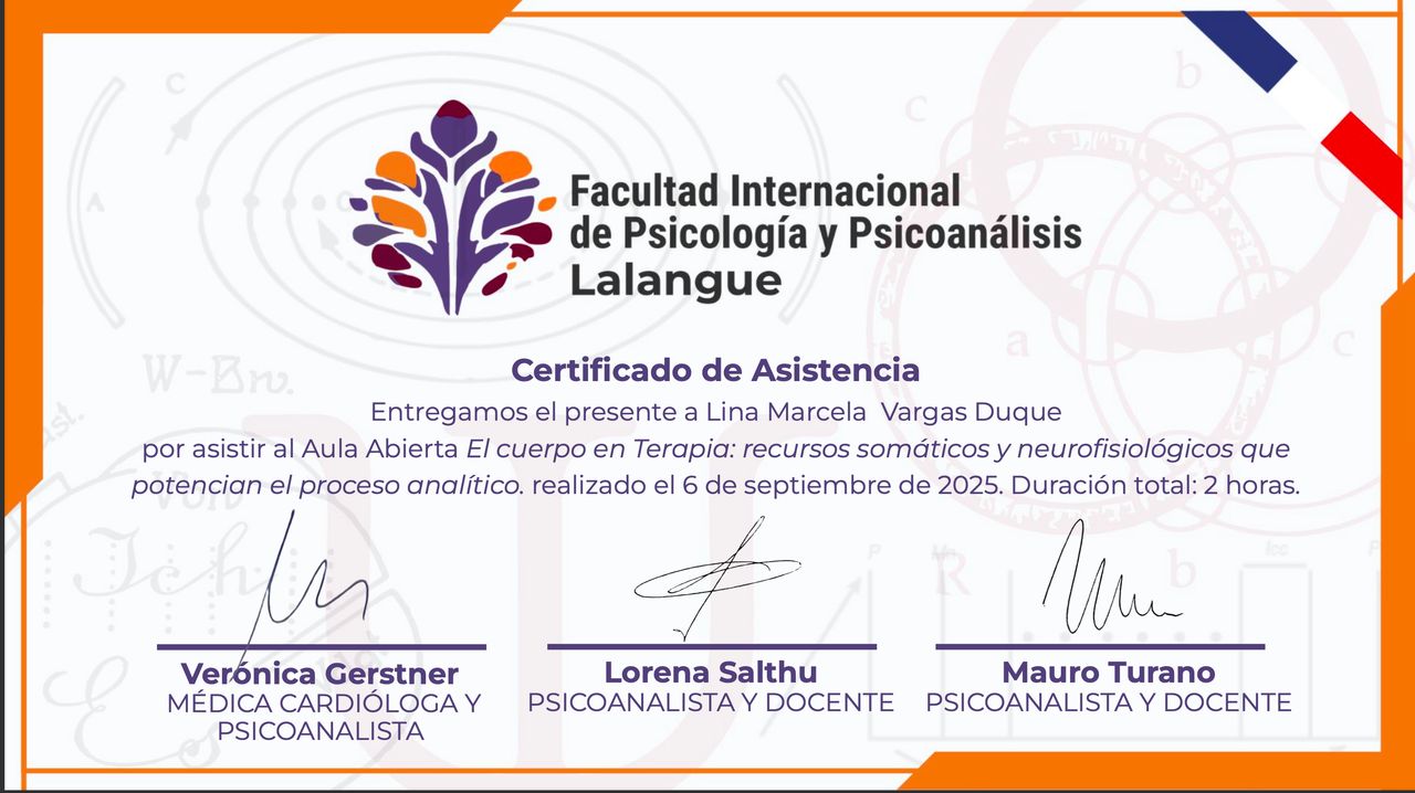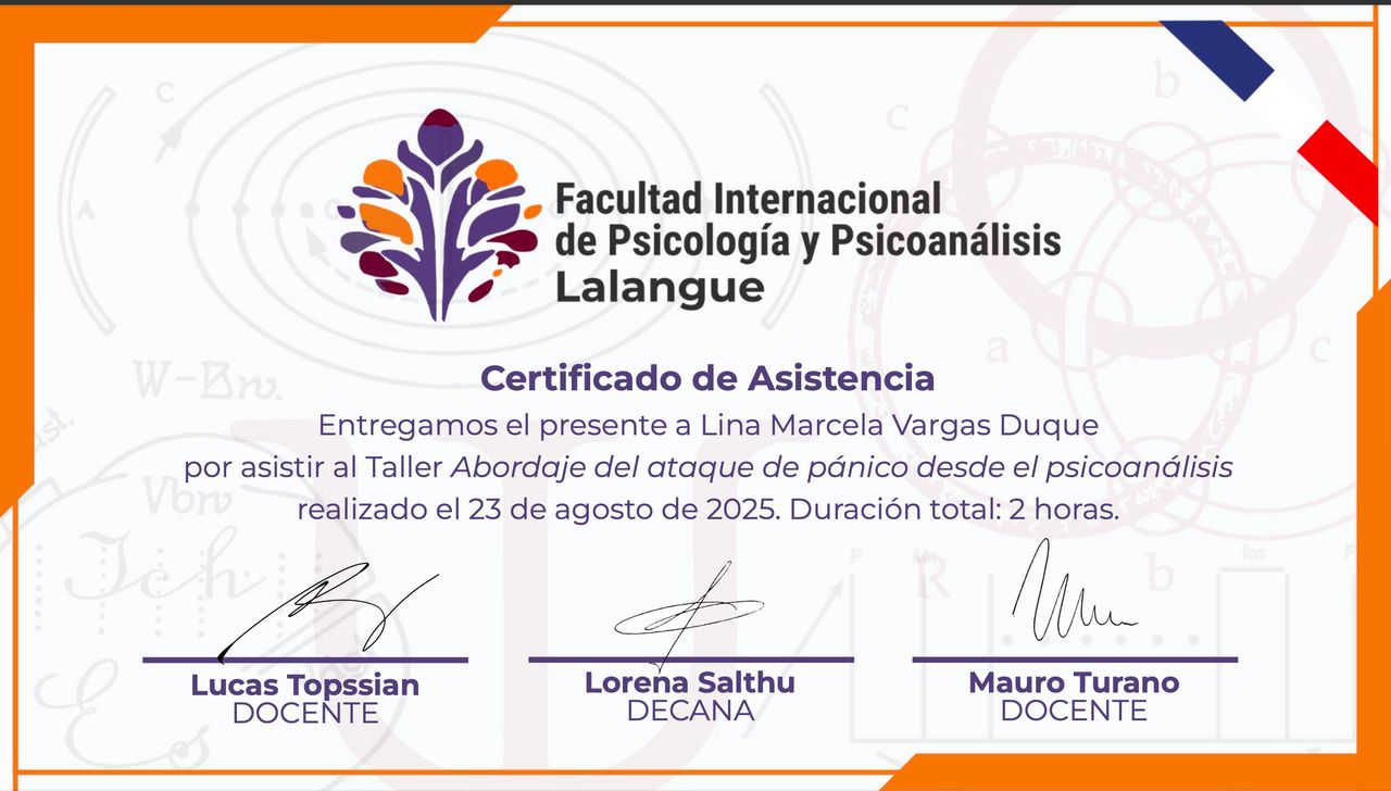Cuento con formación continua en seminarios, congresos y espacios especializados, tanto nacionales como internacionales, que enriquecen mi práctica clínica y me permiten ofrecer un acompañamiento profundo y respetuoso de cada historia.