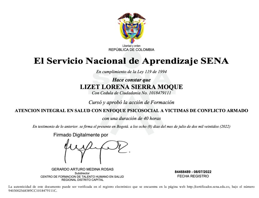 ¿Cuáles son las especialidades principales de Lorena Sierra?Lorena Sierra es Psicólogo. Te mostramos algunos de los servicios que ofrece gracias a su trayectoria y su amplia experiencia: Asesoría psicológica y psicoeducación, Grupos de apoyo para pacientes con ansiedad, Visita Psicología, Salud mental empresarial, Evaluación psicológica, Grupos de apoyo, Psicoterapia de pareja, Psicoterapia Individual, Terapia cognitiva del comportamiento (TCC), Terapia de pareja.