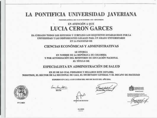 Núm. Colegiado: Universidad Autonoma Universidad Javerian