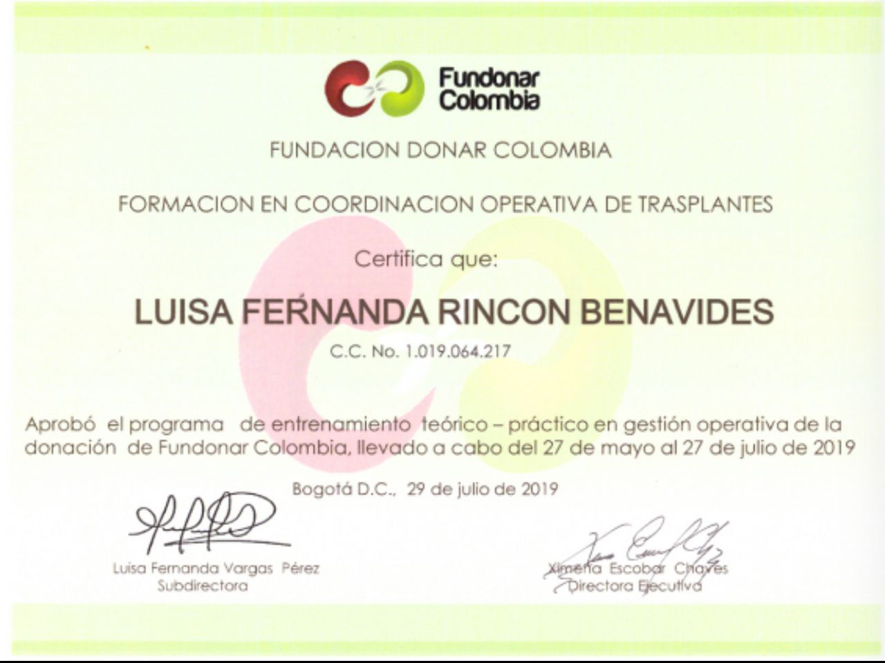 1 opiniónMedico internista, coordinadora operativa de donación y trasplantes, Epidemiologa de la Fundación Santa Fe de Bogotá. Enfoque en el manejo integral del paciente, no solo es su salud física, es también mental y emocional.
