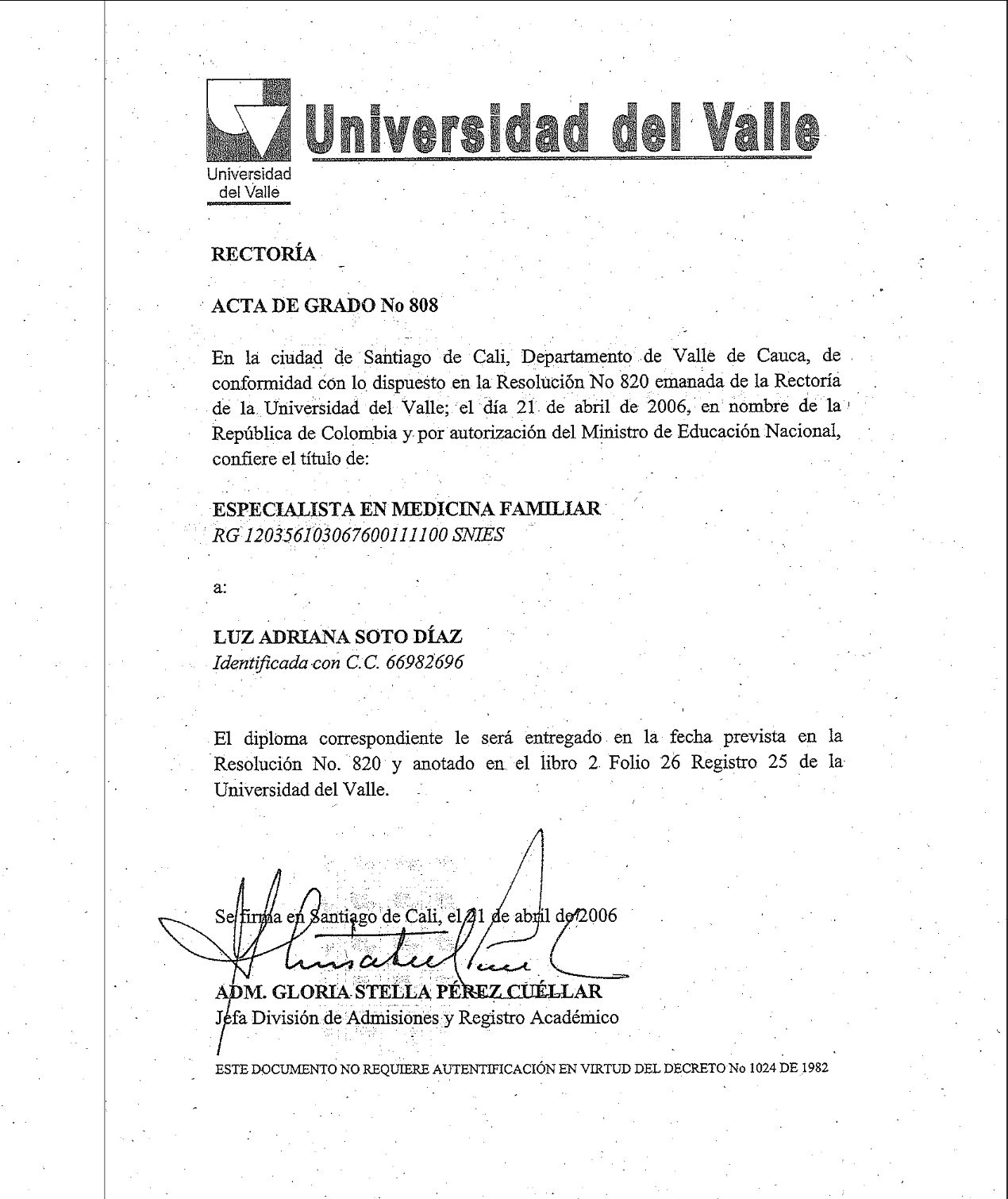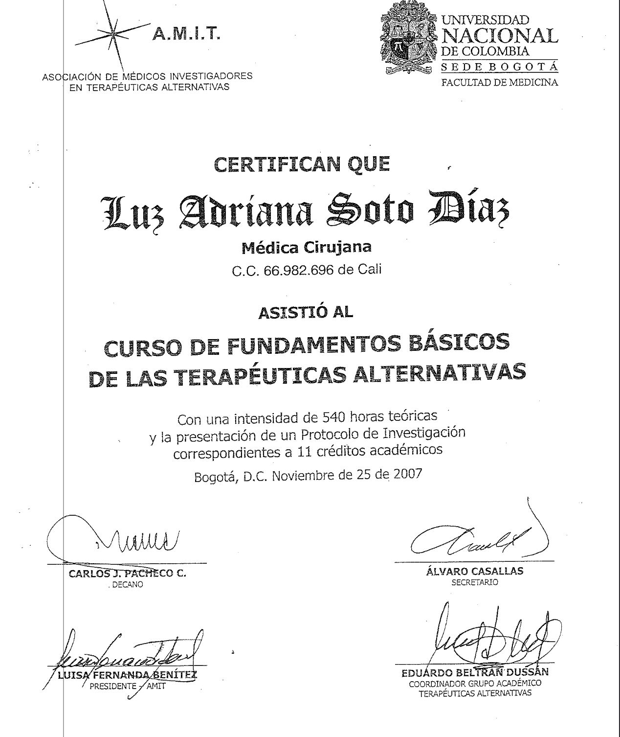 ¿Cuáles son las especialidades principales de Luz Adriana Soto Diaz?Luz Adriana Soto Diaz es Médico general, Medico alternativo, Especialista en Medicina Familiar. Te mostramos algunos de los servicios que ofrece gracias a su trayectoria y su amplia experiencia: Visita Medicina Familiar, Certificados médicos, audición y visión, Tratamiento para la obesidad, Terapia neural, Control nutricional, Acupuntura, Certificado de Discapacidad, Tratamiento y seguimiento de gastritis y Colon irritable.