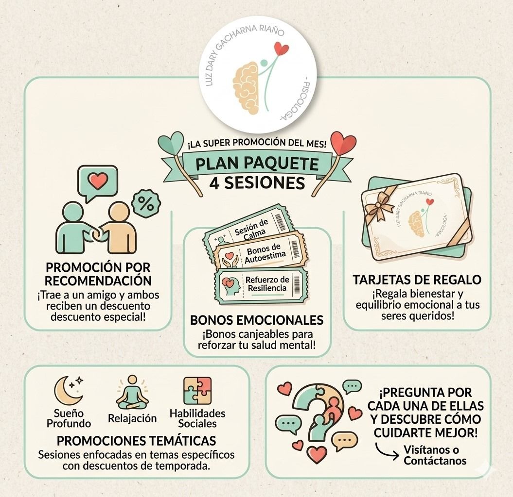Te presentamos nuestro PLAN PAQUETE DE 4 SESIONES pensado para acompañarte en tu proceso de crecimiento personal y equilibrio mental.