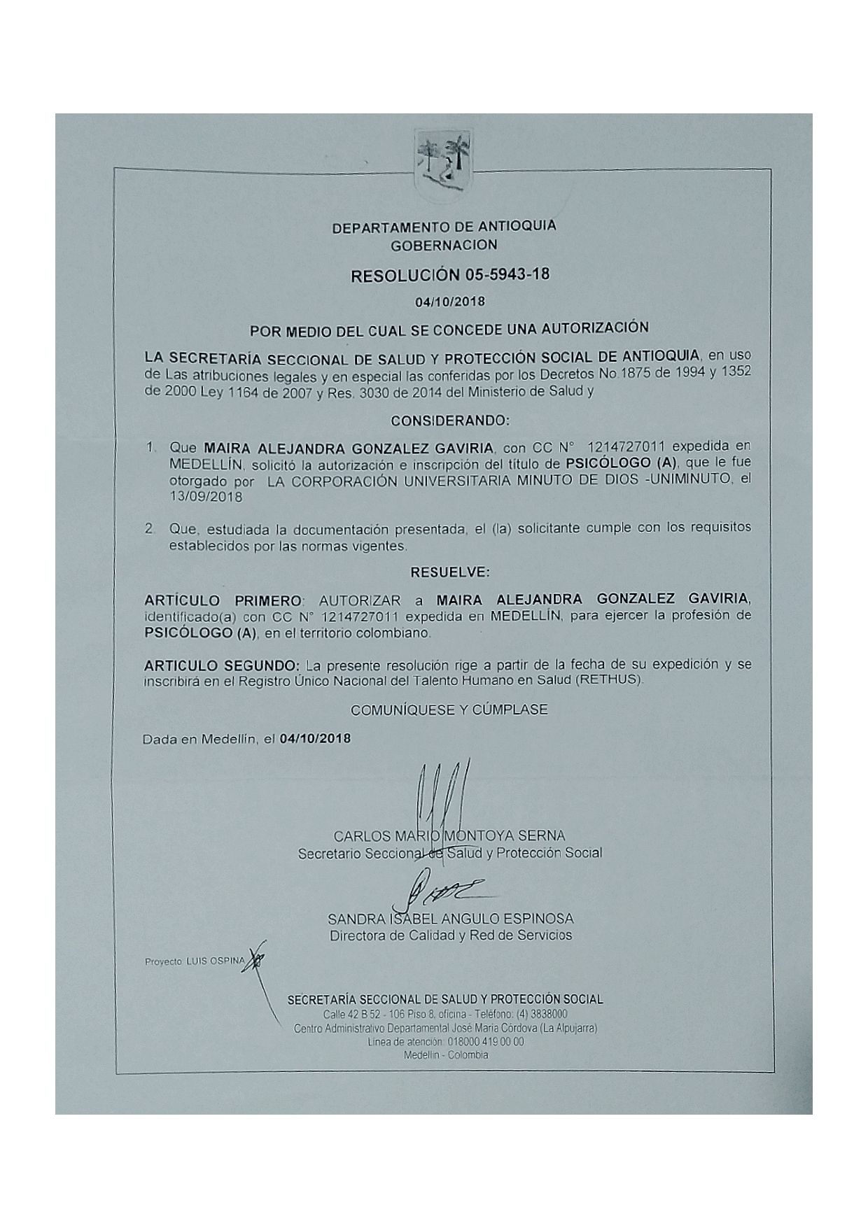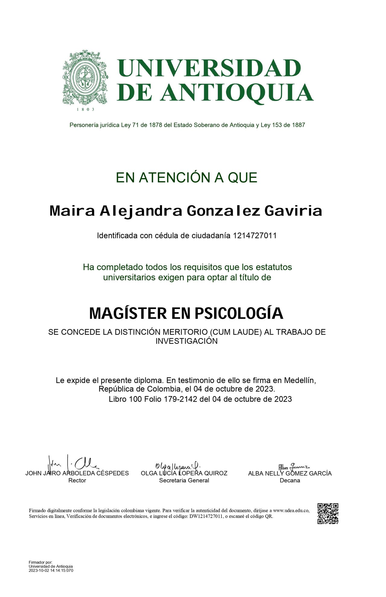 Dra. Maira Alejandra González Gaviria
