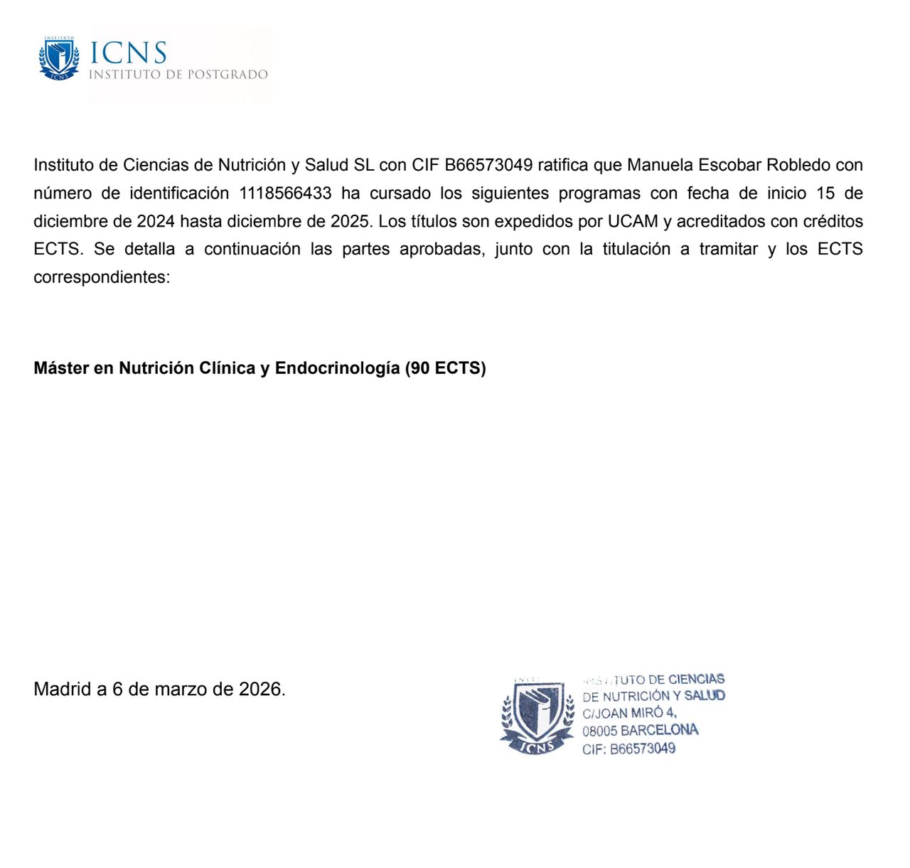 Soy Manuela Escobar Robledo, Médica experta en Nutrición Clínica y Salud Hormonal.