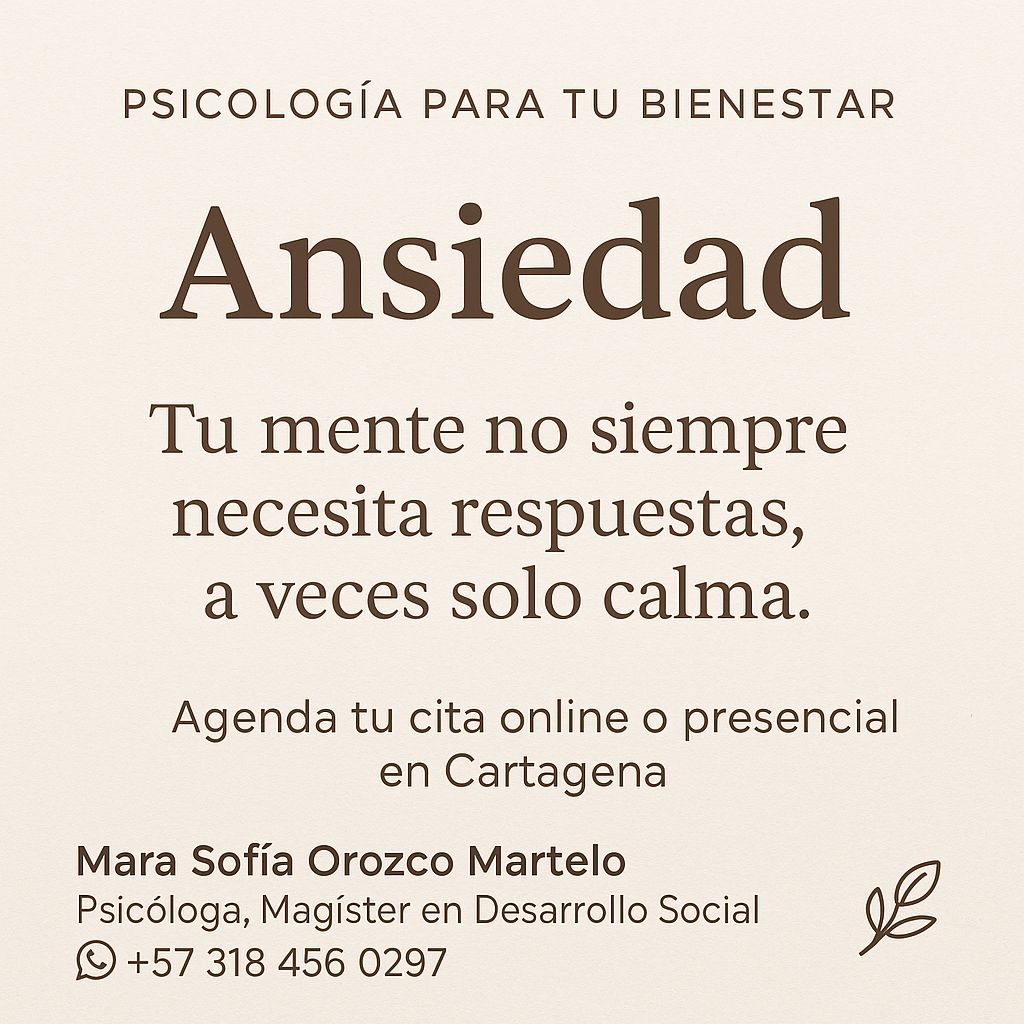 Soy Mara Sofía Orozco Martelo, Psicóloga y Magíster en Desarrollo Social, con más de diez años de experiencia en el acompañamiento psicológico y emocional de personas que atraviesan ansiedad, estrés, rupturas de pareja, duelos, heridas del pasado, dependencia emocional y crisis de sentido.