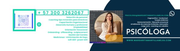 especializada en desarrollo humano, salud mental y bienestar emocional, con certificaciones internacionales en Coaching, terapia sistémica, Programación Neurolinguistica, Herramientas de innovación, proyectiva, psicometría de avanzada, desarrollo Soft skills, Gestión del Cambio.