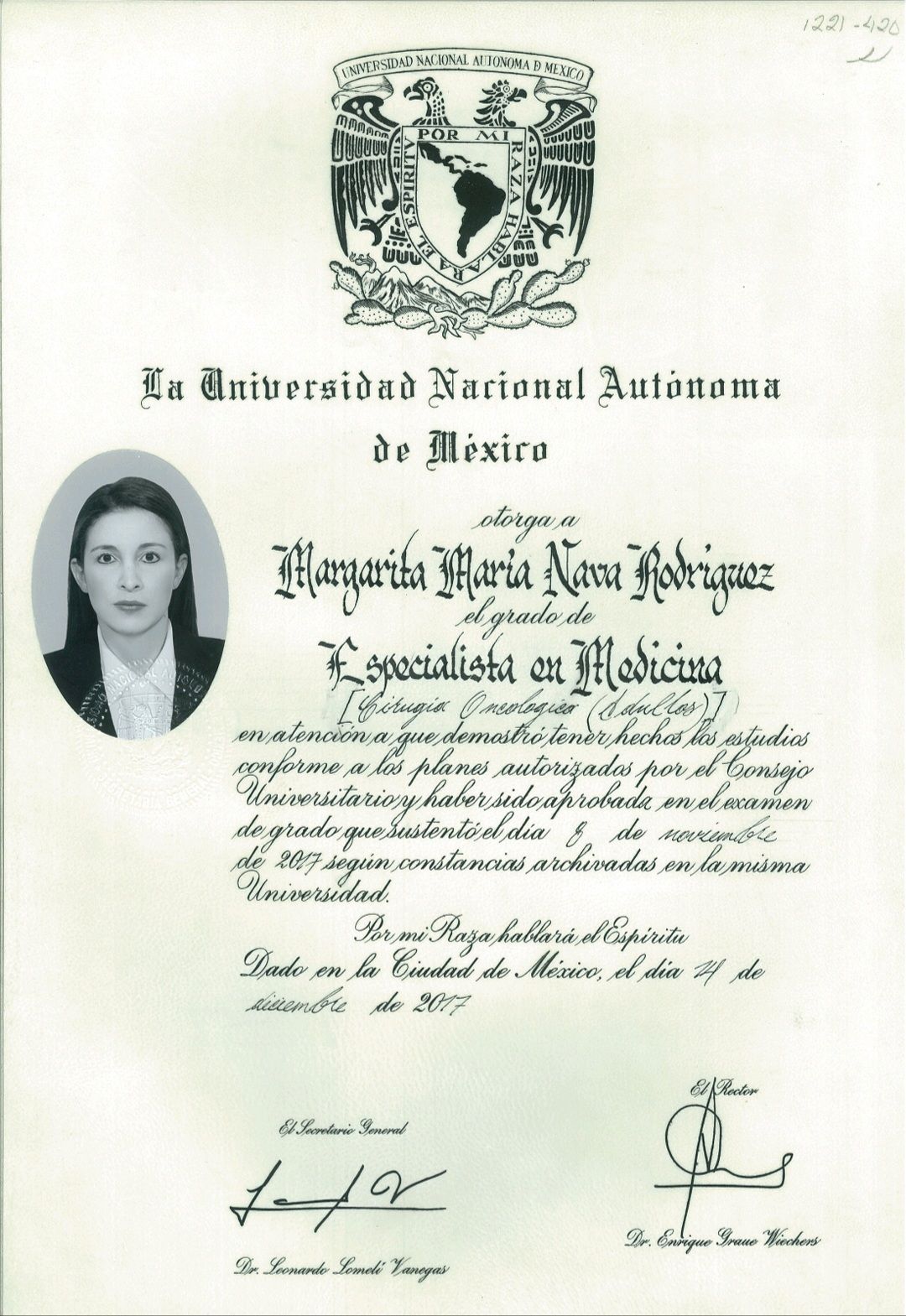 ¿Cuáles son las especialidades principales de Margarita Maria Nava?Margarita Maria Nava es Cirujano Oncólogo. Te mostramos algunos de los servicios que ofrece gracias a su trayectoria y su amplia experiencia: Chequeo oncológico, Consulta prevención cáncer, Cirugía de colon, Cirugía de peritoneo, Consulta cirugía oncológica, Cirugia de estomago, Cirugía de Citorreducción.