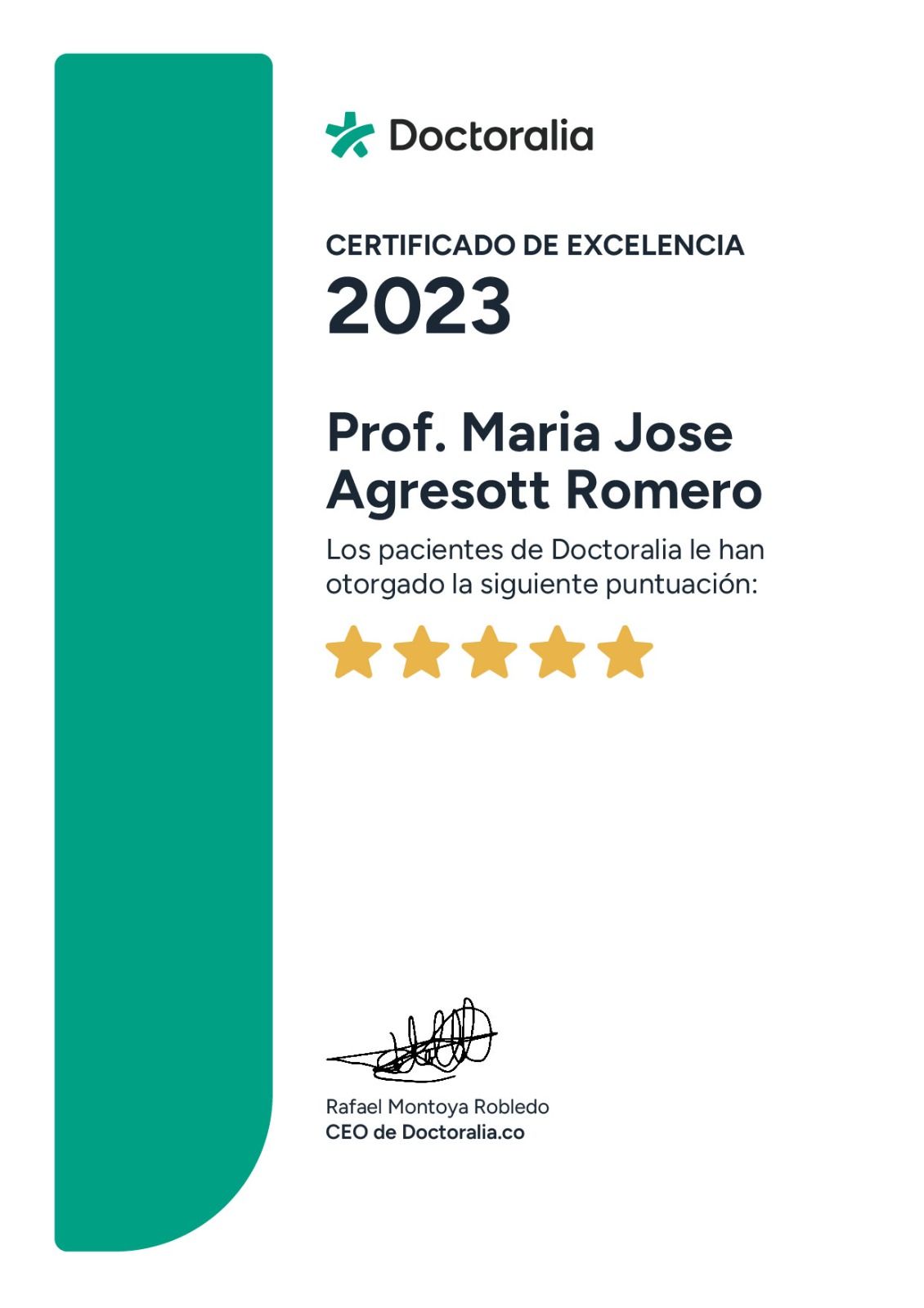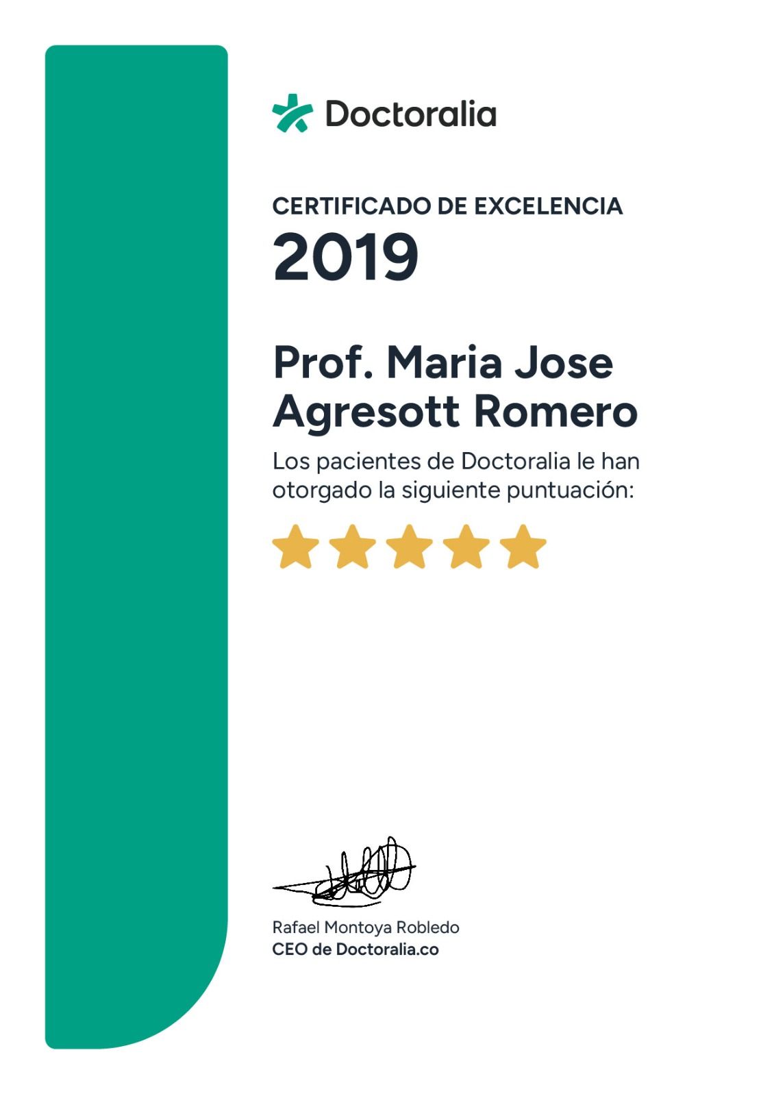 ¿Qué opinan los pacientes de Maria Jose Agresott Romero?Un total de 82 pacientes han querido dejar una opinión sincera y real sobre Maria Jose Agresott Romero, otorgándole además una valoración media de 5 estrellas (sobre un máximo de 5).