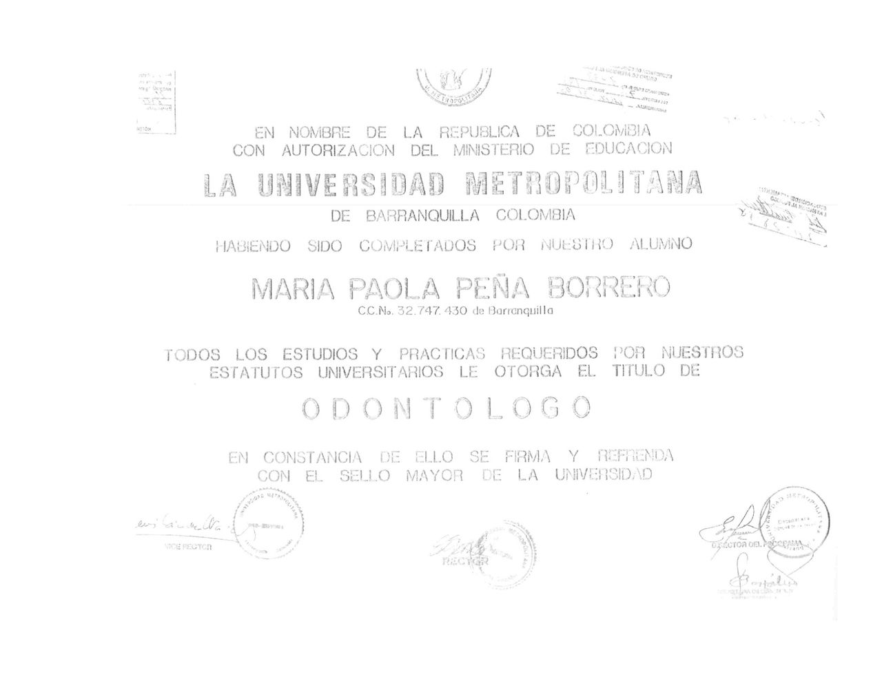 Soy la Dra. María Paola Peña, especialista en Rehabilitación Oral, con 30 años de experiencia dedicados a restaurar la función, la estética y la confianza en la sonrisa de mis pacientes.