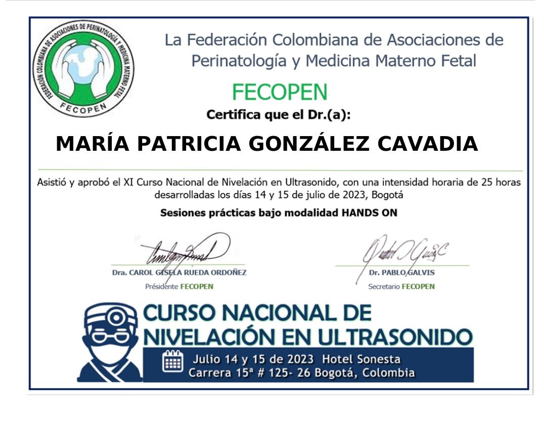 Recomiendo al 100% a la ginecóloga María Patricia. Excelente profesional, muy humana, explica todo con claridad y genera mucha confianza. Quedé muy satisfecha con su atención. Eres la mejor