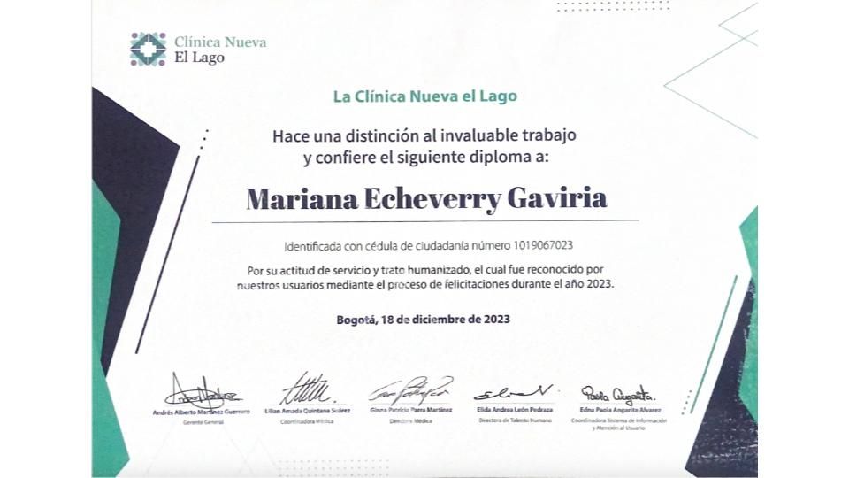 Excelente profesional es la Doctora Mariana, ha estado pendiente de mi proceso médico. Solo gratitud y felicitación para ella y el centro médico.