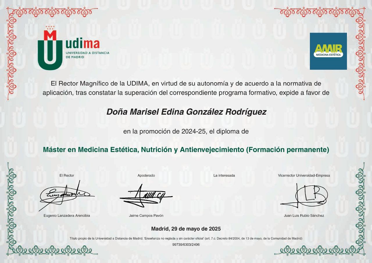 ¿Cuáles son las especialidades principales de Marisel González Rodriguez?Marisel González Rodriguez es Médico estético. Te mostramos algunos de los servicios que ofrece gracias a su trayectoria y su amplia experiencia: Visita Medicina Estética, Rejuvenecimiento de cuello, Peeling o quimioexfoliación, Revitalización facial con ácido hialurónico, Rejuvenecimiento de manos, Tratamiento de acné, Ácido hialurónico, Aplicación de enzimas, Tratamiento de despigmentación cutánea, Tratamiento para alopecia androgenética.