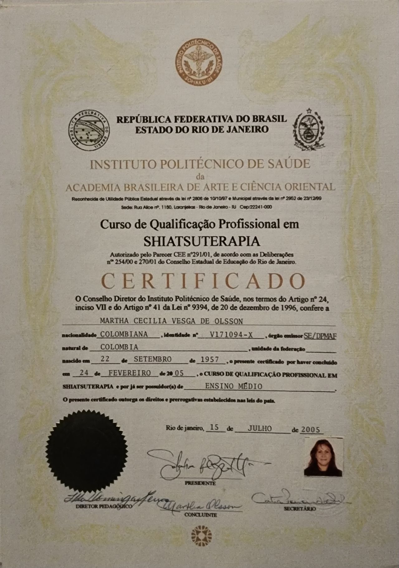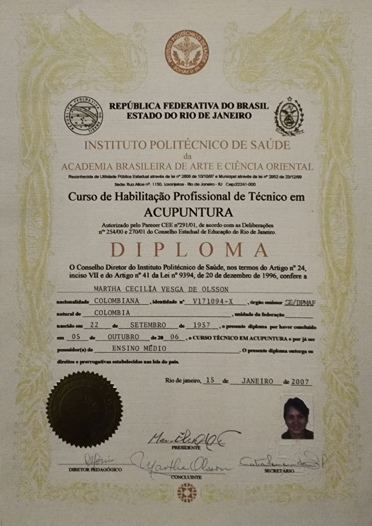 ¿Cuáles son las especialidades principales de Martha cecilia Vesga de olsson?Martha cecilia Vesga de olsson es Terapeuta complementario. Te mostramos algunos de los servicios que ofrece gracias a su trayectoria y su amplia experiencia: Acupuntura y moxibustión, Manejo de migraña, Manejo integral de obesidad, Masaje terapéutico, Prevención, manejo y control de estrés, Visita Medicina Alternativa, Reiki, Consulta en Medicina Alternativa, Primera Visita Medicina Alternativa, Manejo en procesos de duelo.