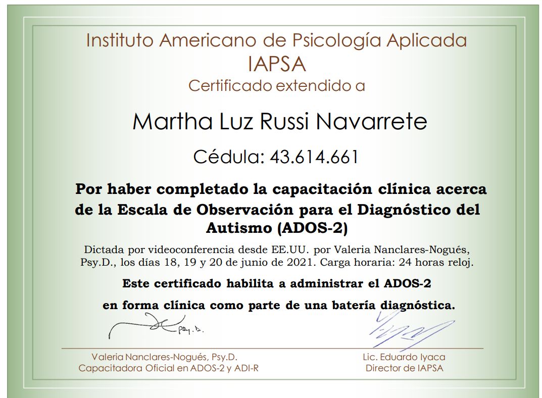 No hay palabras para describir su profesionalismo, su tranquilidad para explicar y generar la confianza que uno como Padre necesita, calidad humana, y con una demostración de su amplio conocimiento acerca de los temas de relacionados con la Neuropsicologia, Felicidades Dra. Dios siga guiando sus pasos.