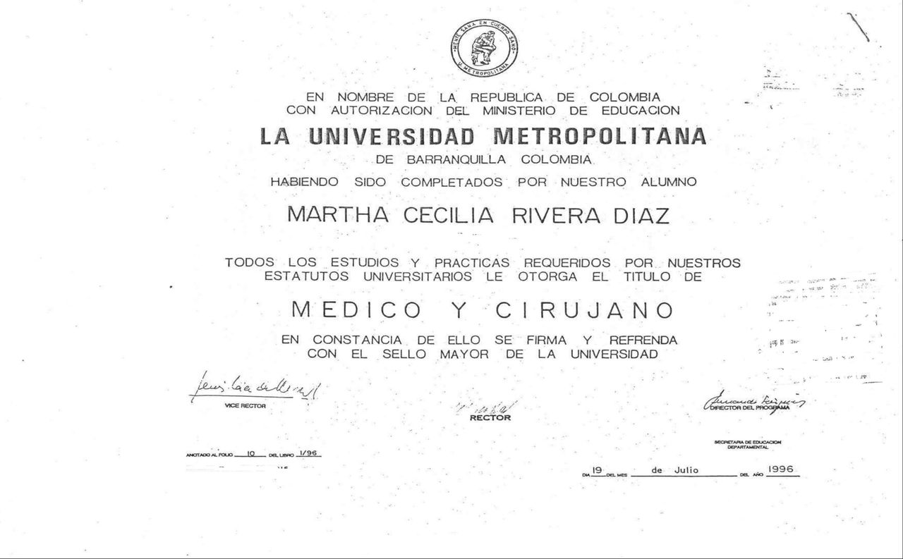 Tengo 30 años de experiencia, y me encanta poder generar confianza y tranquilidad en quienes me consultan. Atiendo en mi consultorio en Mariquita y por telemedicina.