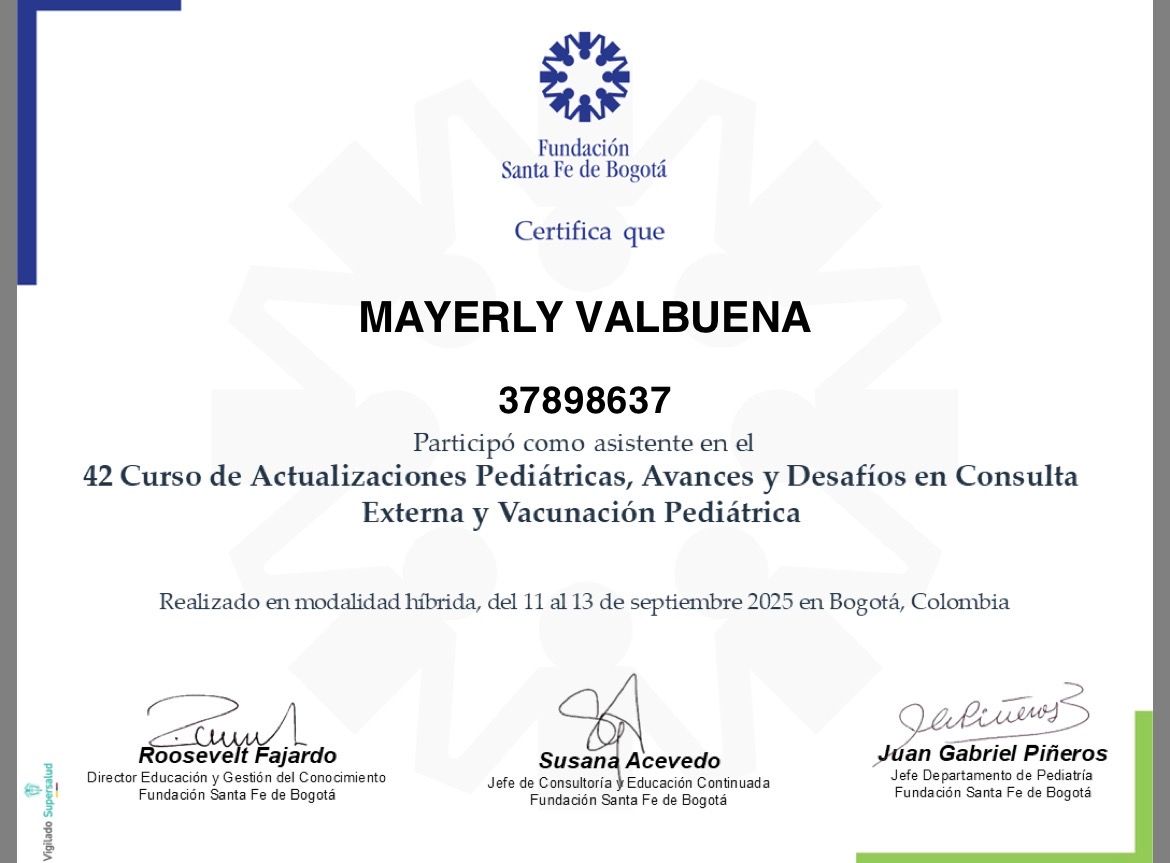 Soy médica pediatra con amplia experiencia en instituciones de salud reconocidas. Mi enfoque combina atención integral y humanizada para niños y adolescentes, acompañando a las familias en cada etapa de su desarrollo. Me mantengo en constante actualización y participo activamente en actividades científicas y académicas, garantizando una atención segura, basada en evidencia y de excelencia.